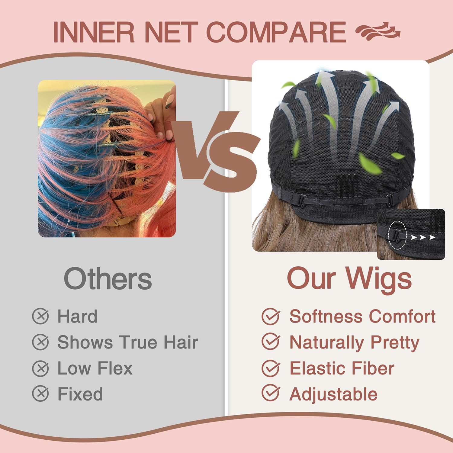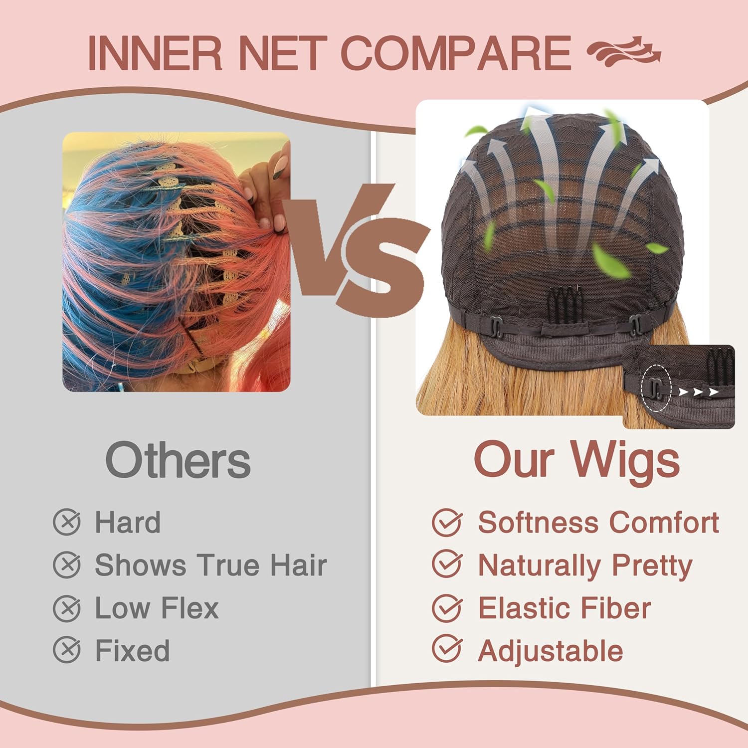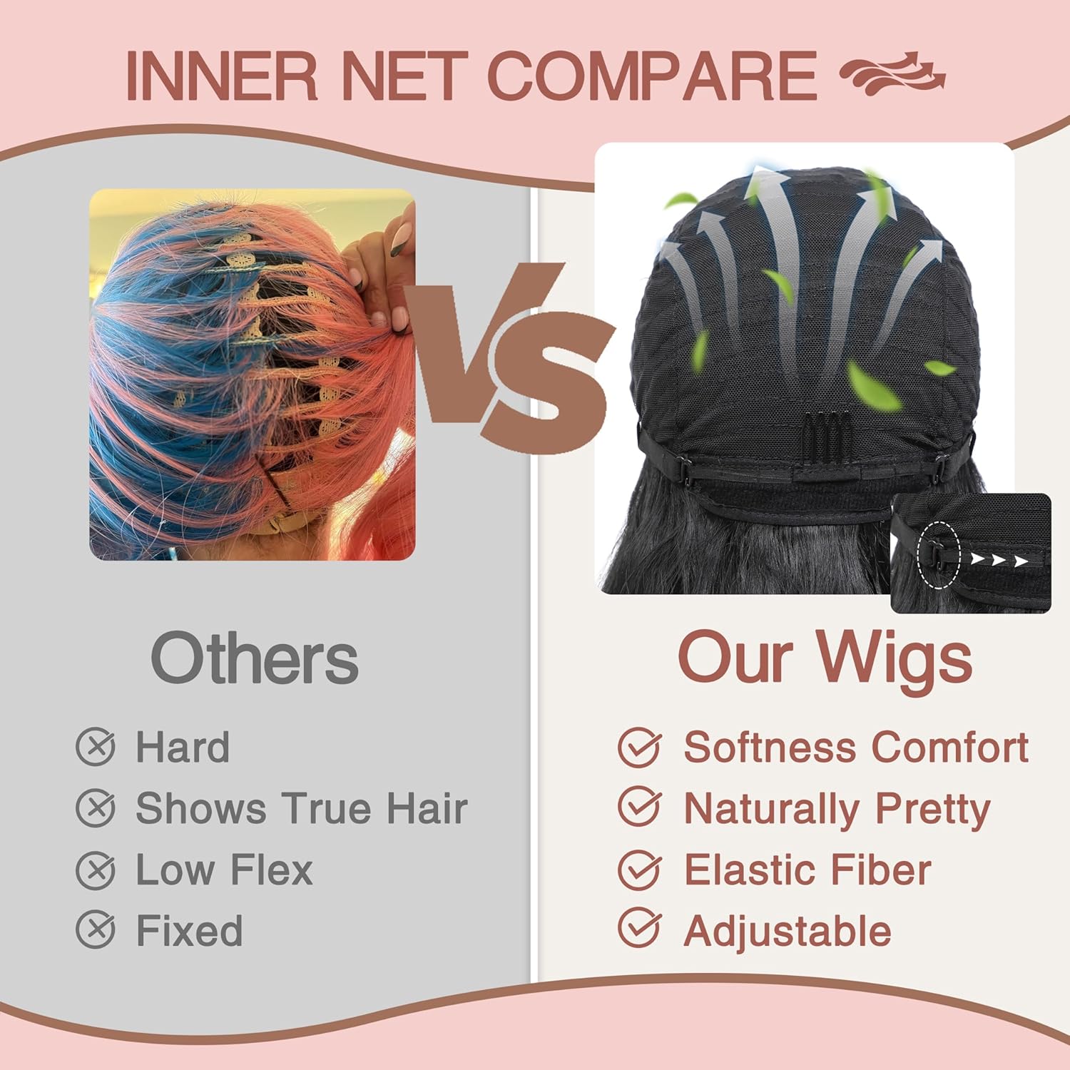 - Comfortable Secure:Womens wig cap comes with an adjustable elastic band, suitable for head circumferences from 21 to 22.5 inches. Hair wig comes with a breathable, high-elastic mesh cap for comfort and three clips to prevent slipping