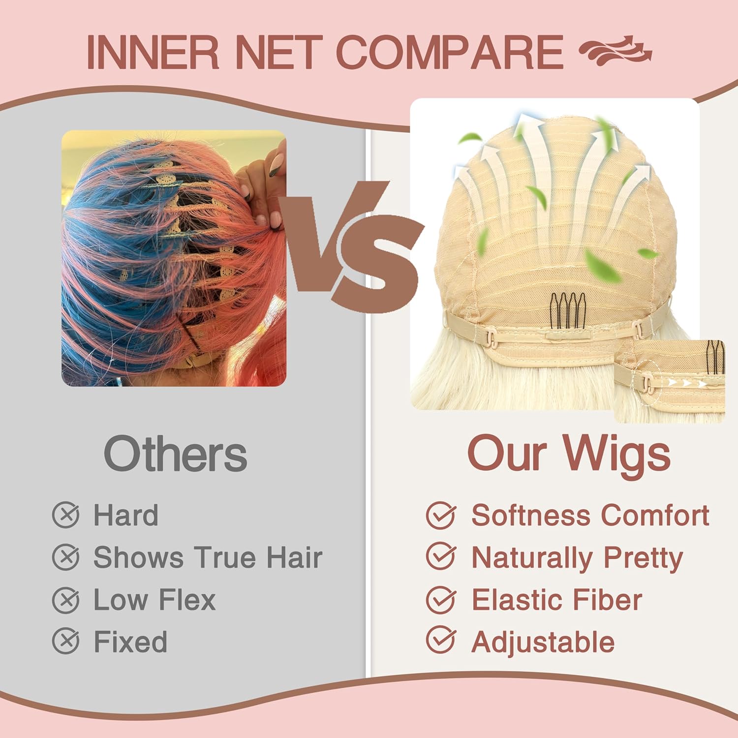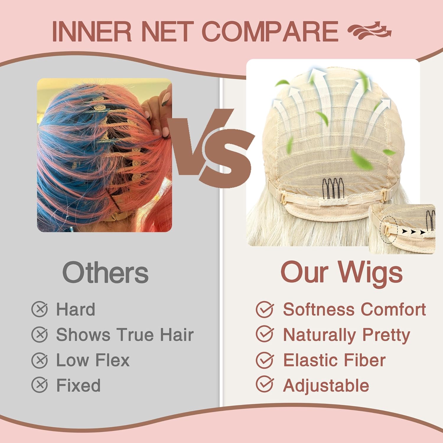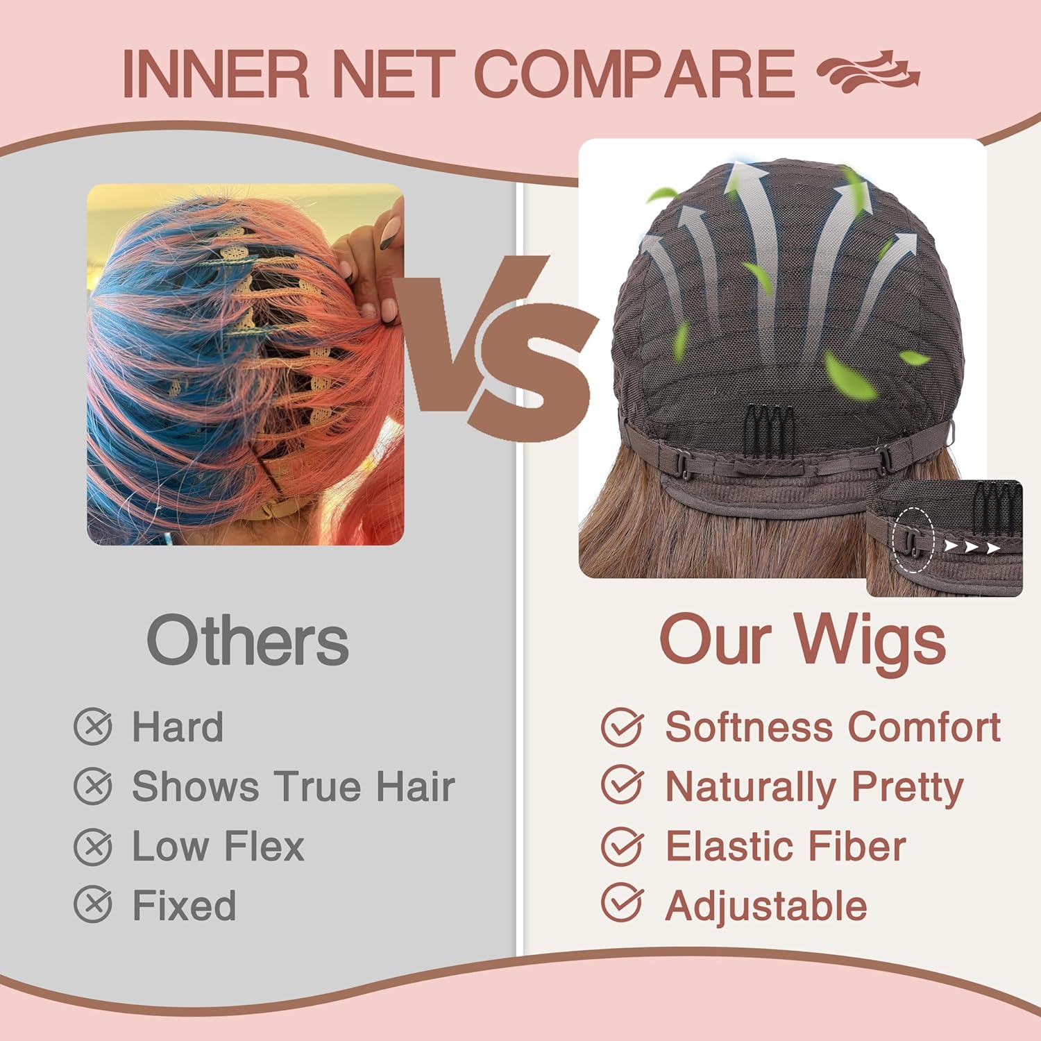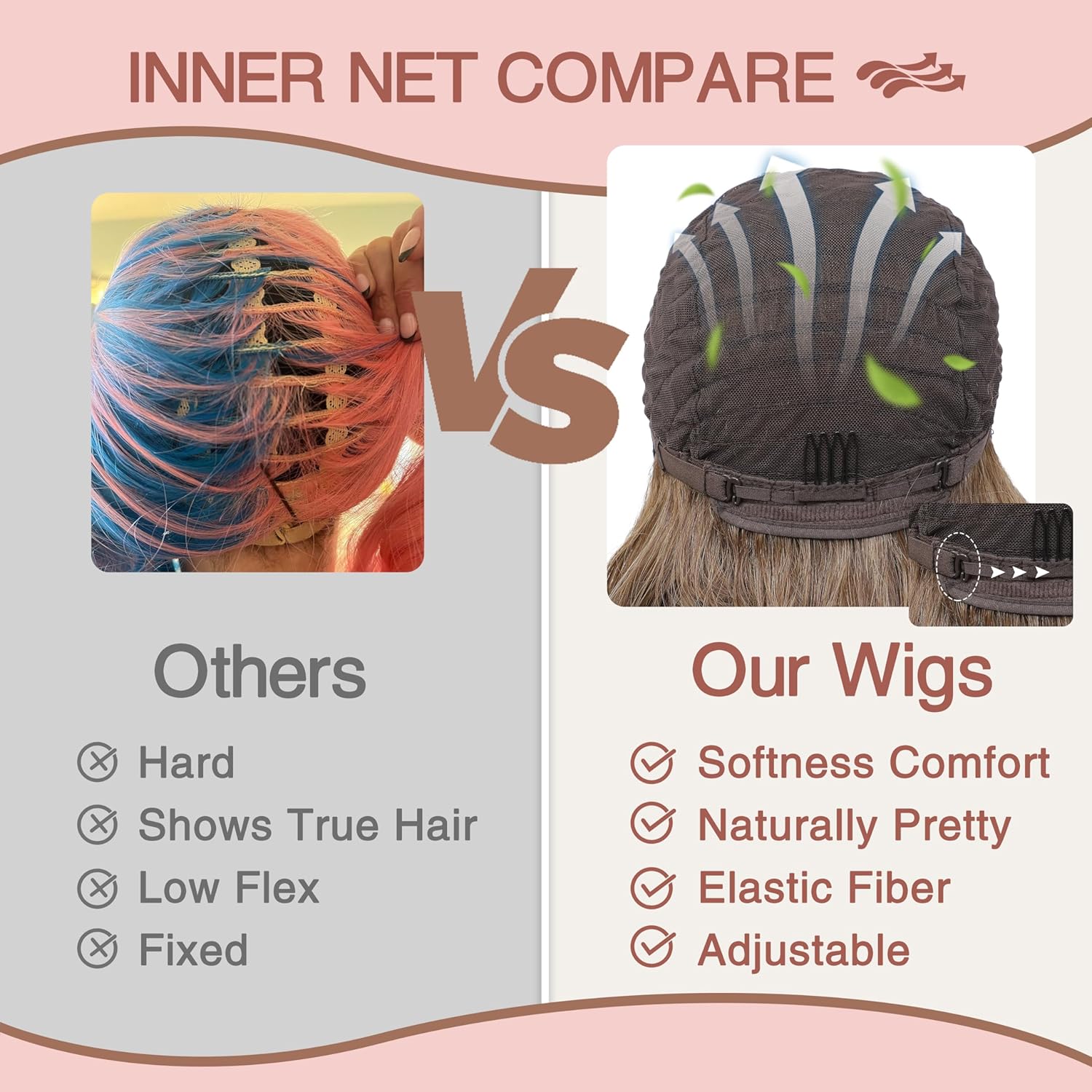 - Comfortable Secure:Womens wig cap comes with an adjustable elastic band, suitable for head circumferences from 21 to 22.5 inches. Hair wig comes with a breathable, high-elastic mesh cap for comfort and three clips to prevent slipping