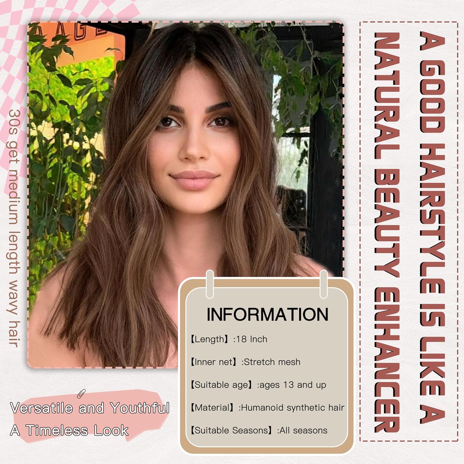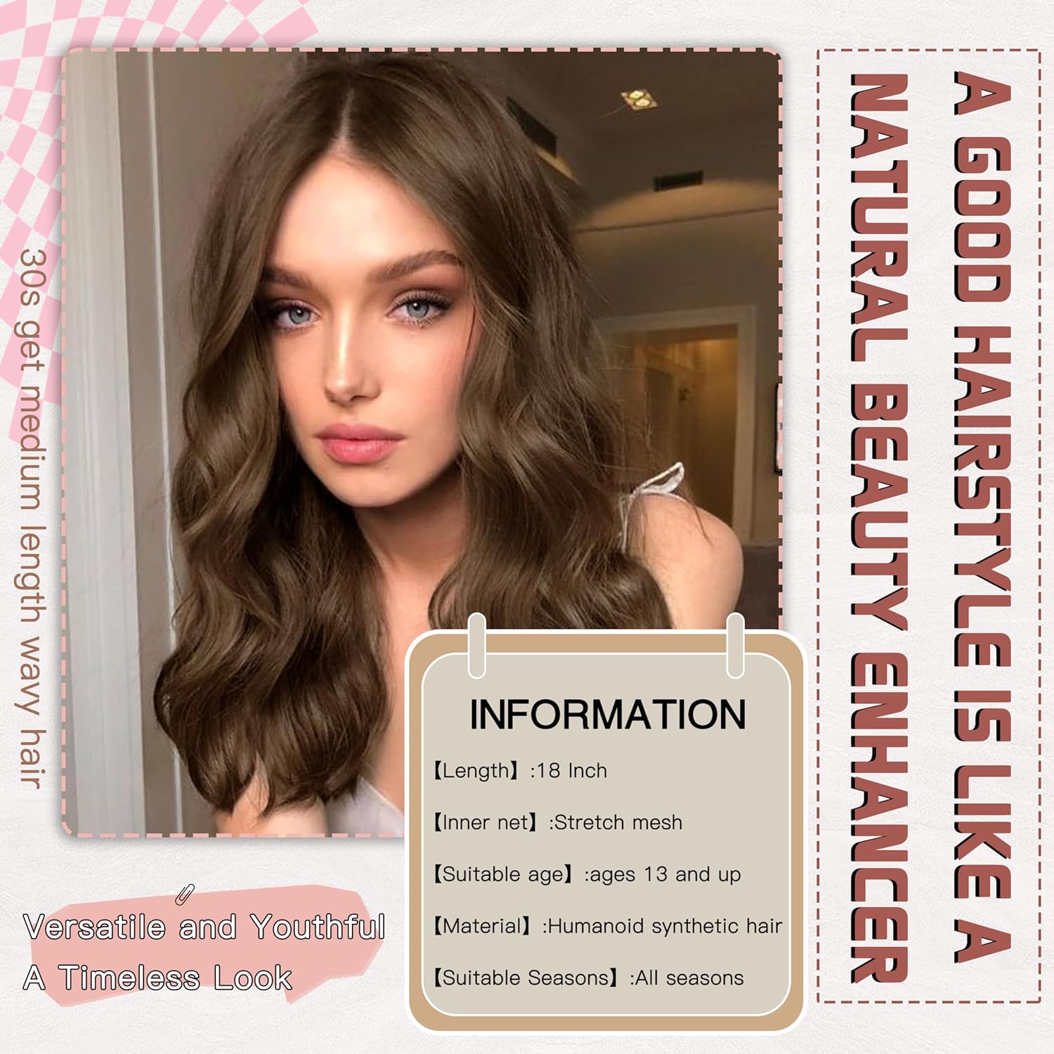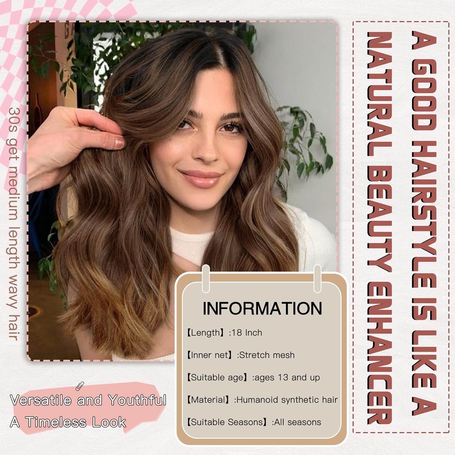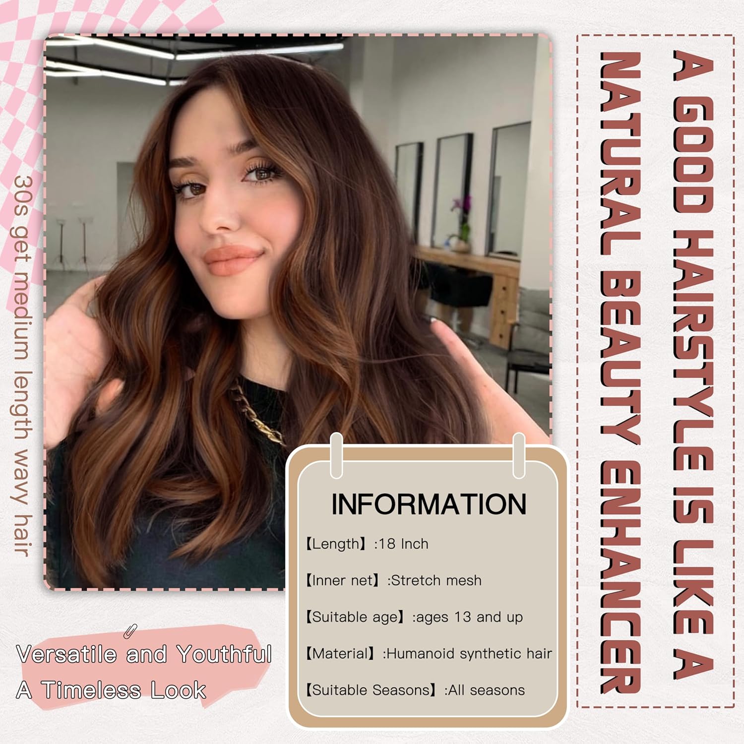 Brown Highlights18" Natural Medium Length Synthetic Wavy Wig for Women