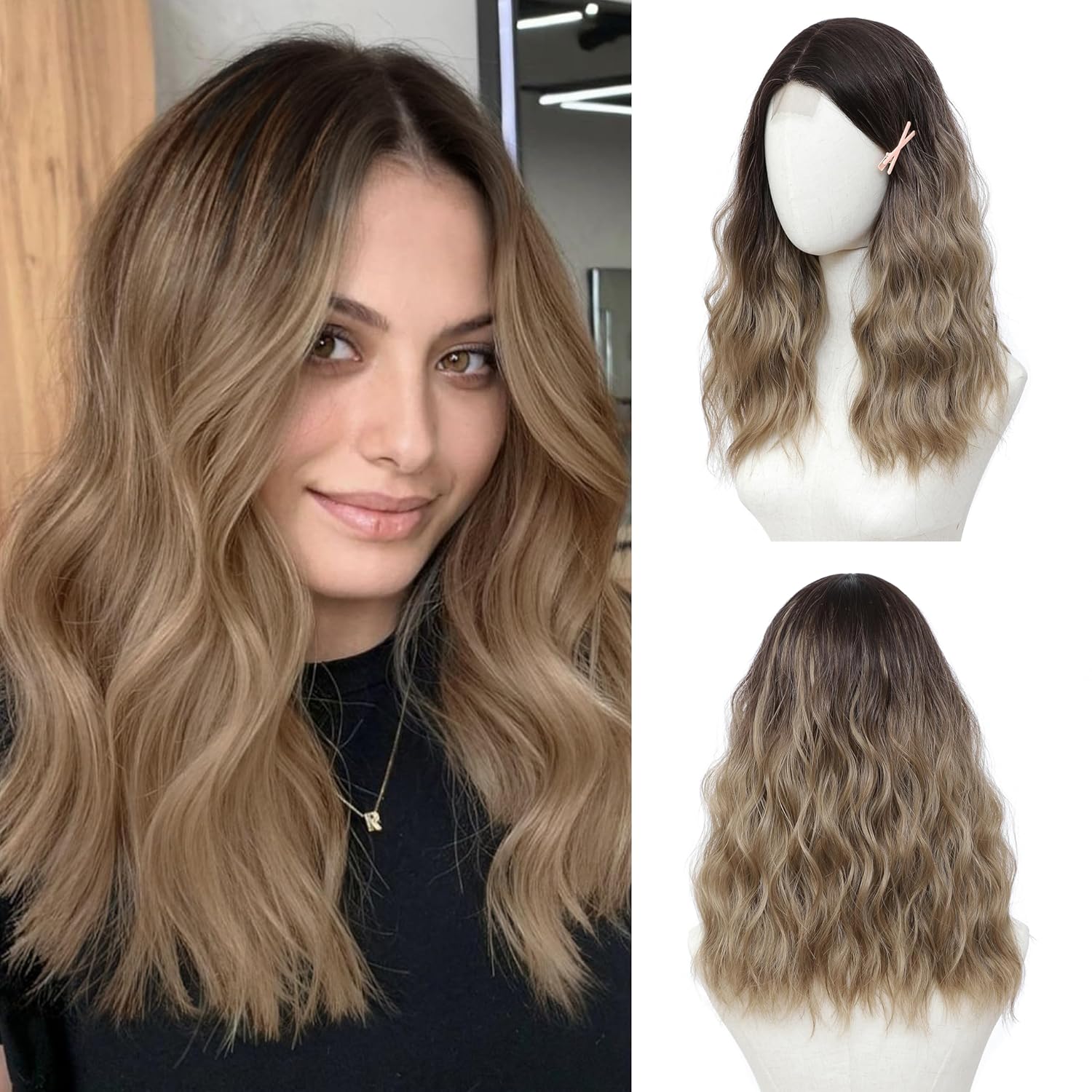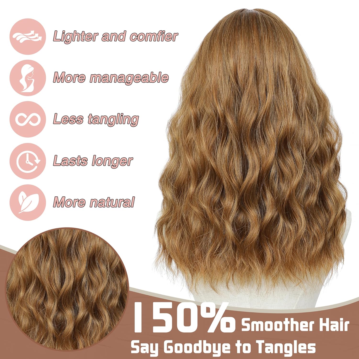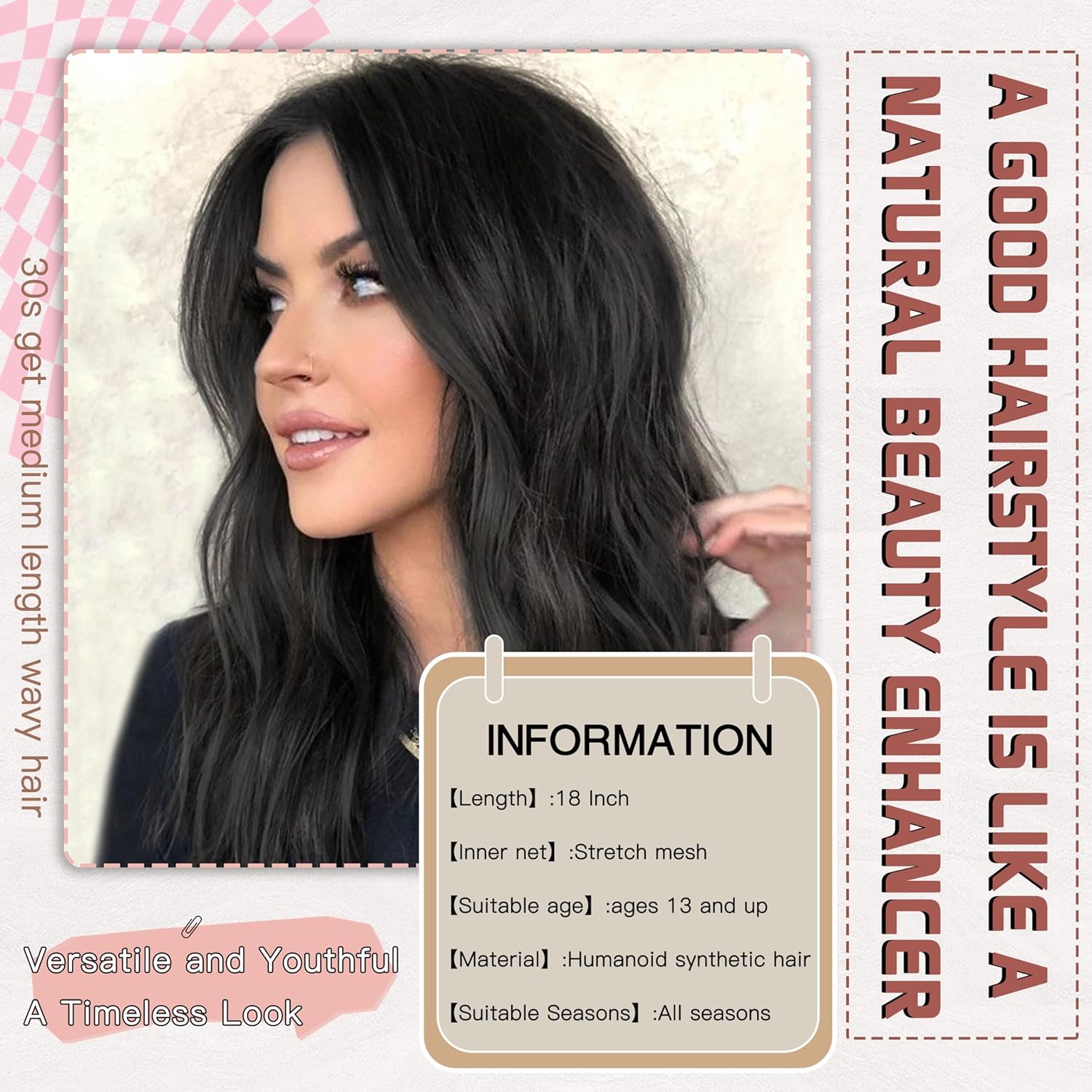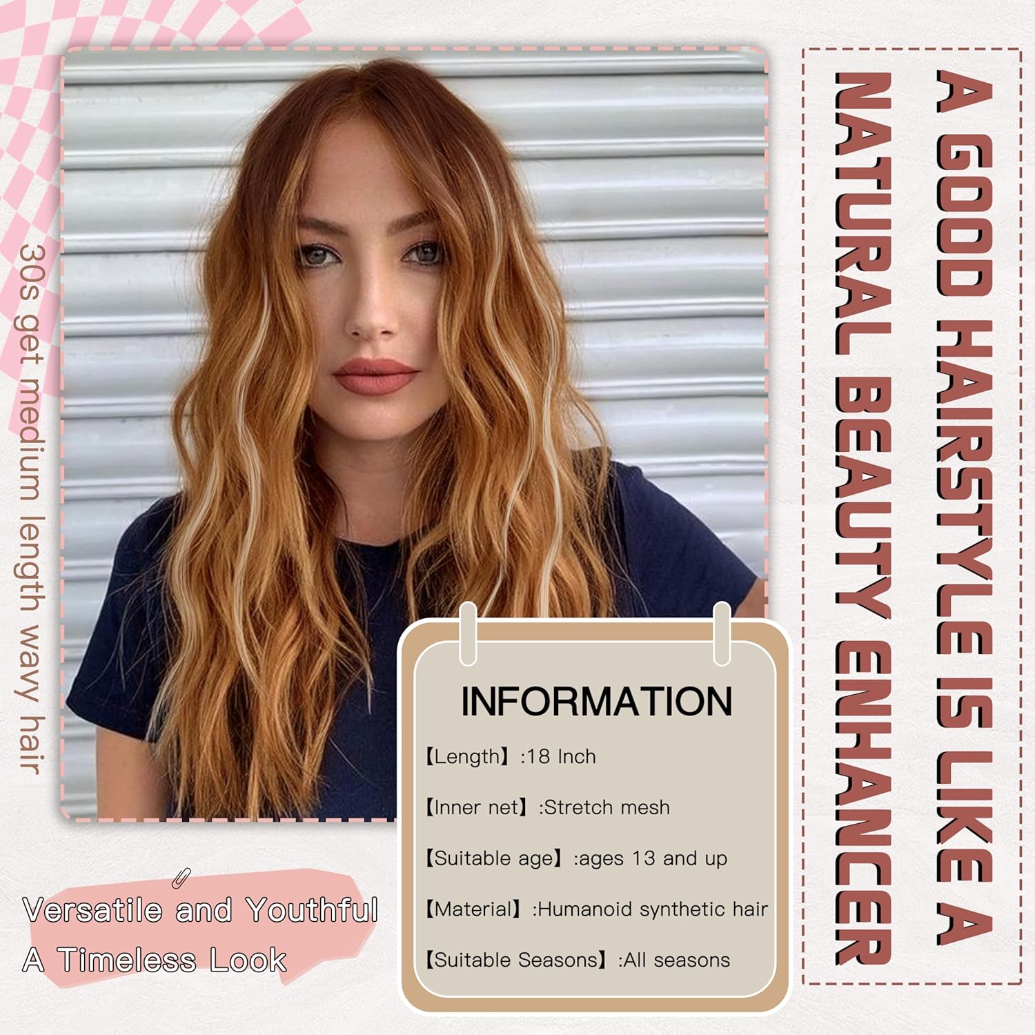 Brown Highlights18" Natural Medium Length Synthetic Wavy Wig for Women