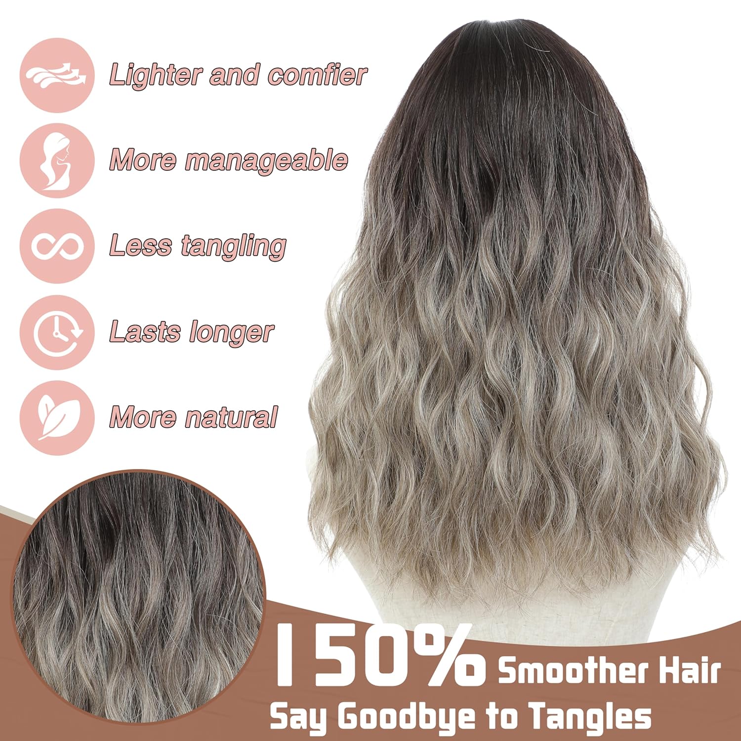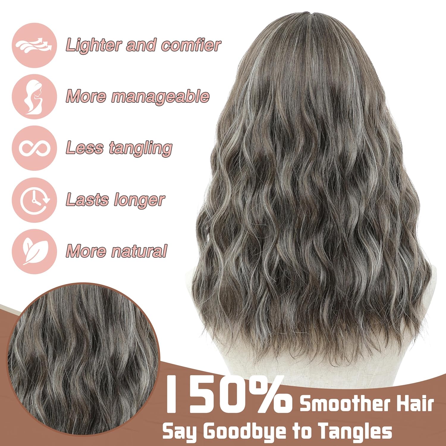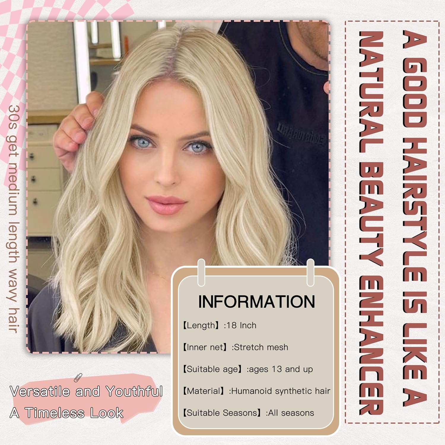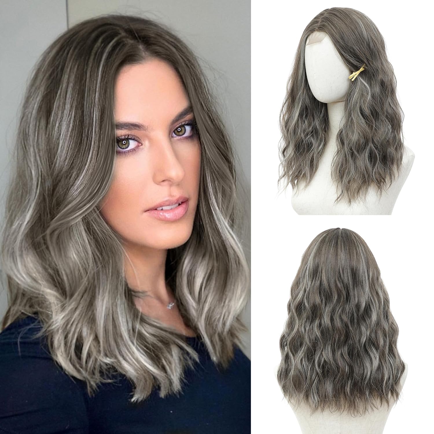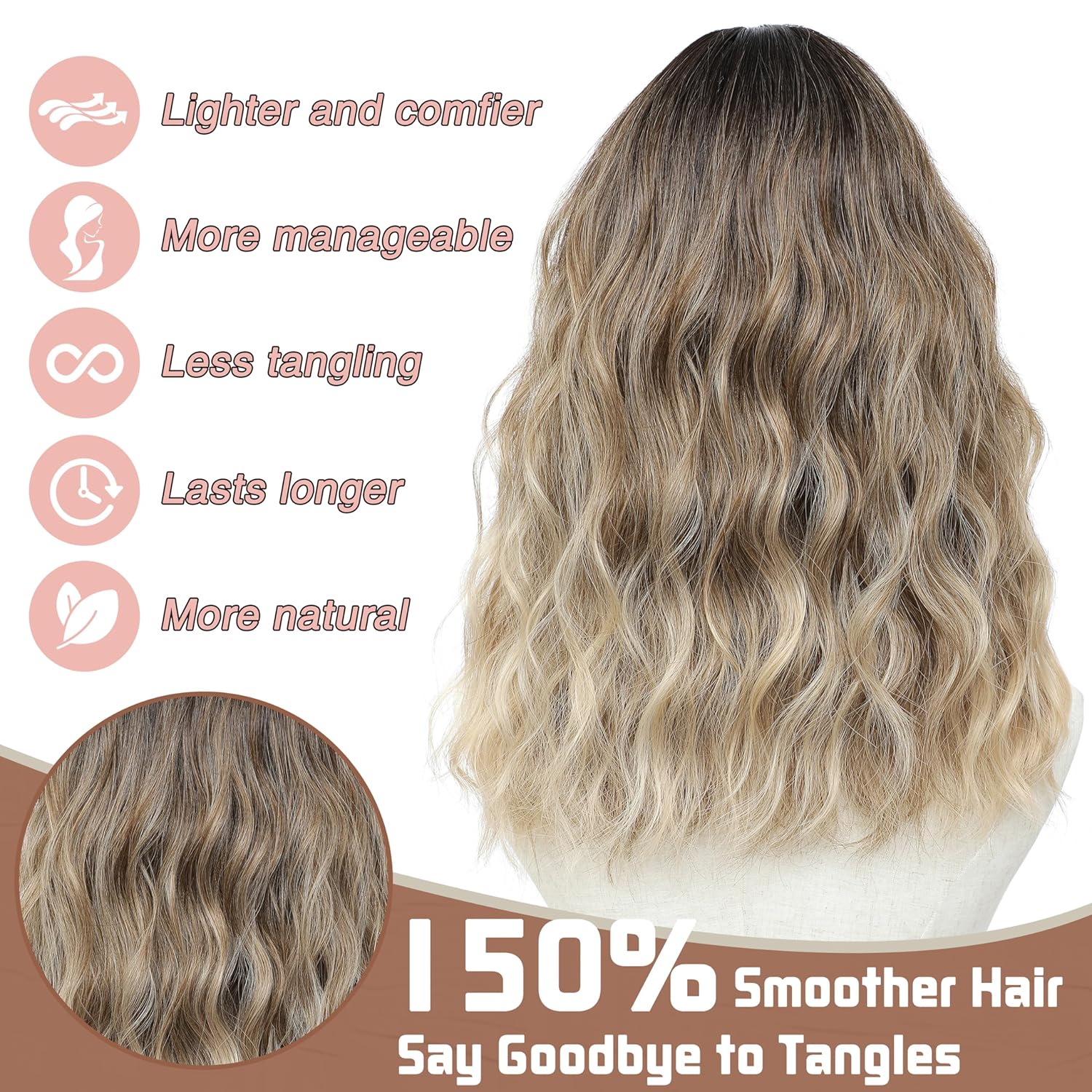Brown Highlights18" Natural Medium Length Synthetic Wavy Wig for Women
