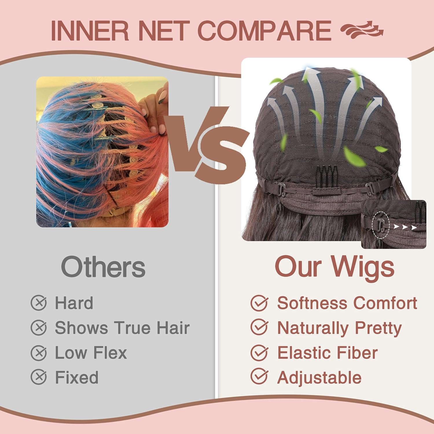 - Heat-resistant Durable:Medium length wigs for women is made of high-temperature resistant synthetic fibers, heat resistant up to 170°C (330°F).This means less prone to damage when styling with hot tools and less prone to tangling and shedding