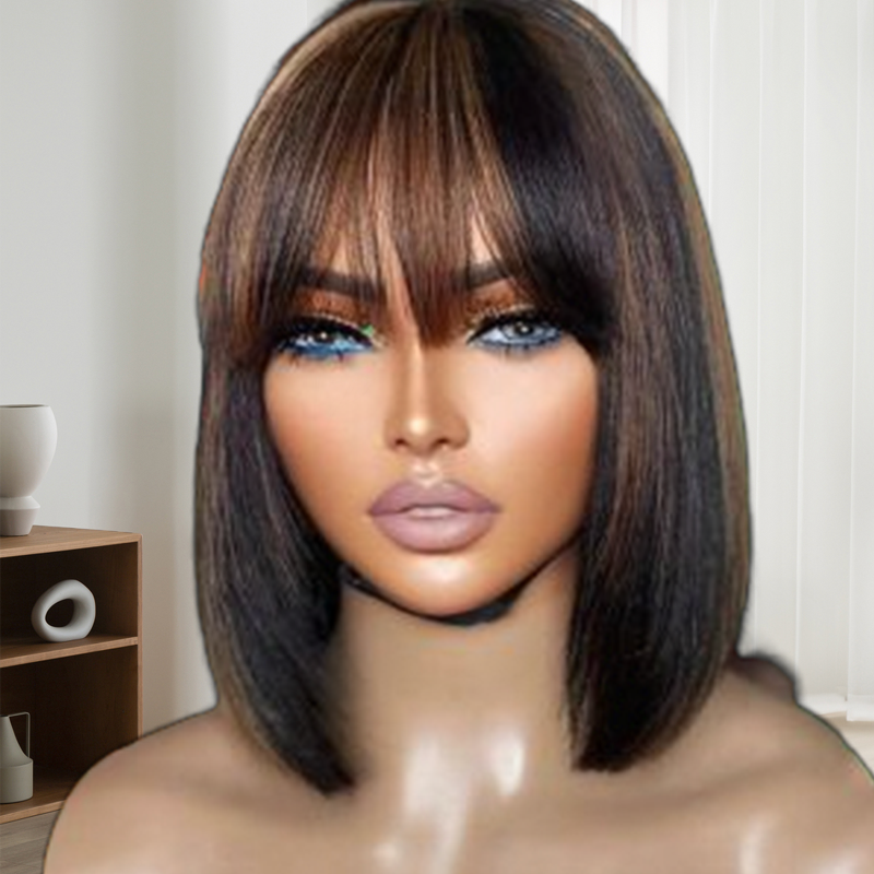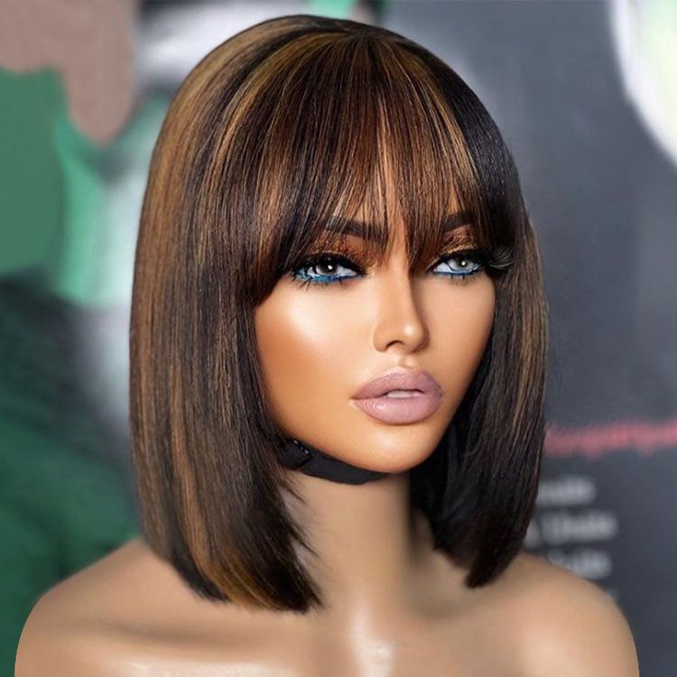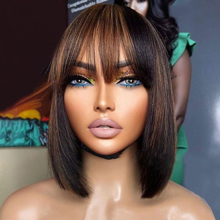 Glueless Wigs With Bangs Lace Front Wig Human Hair Wig