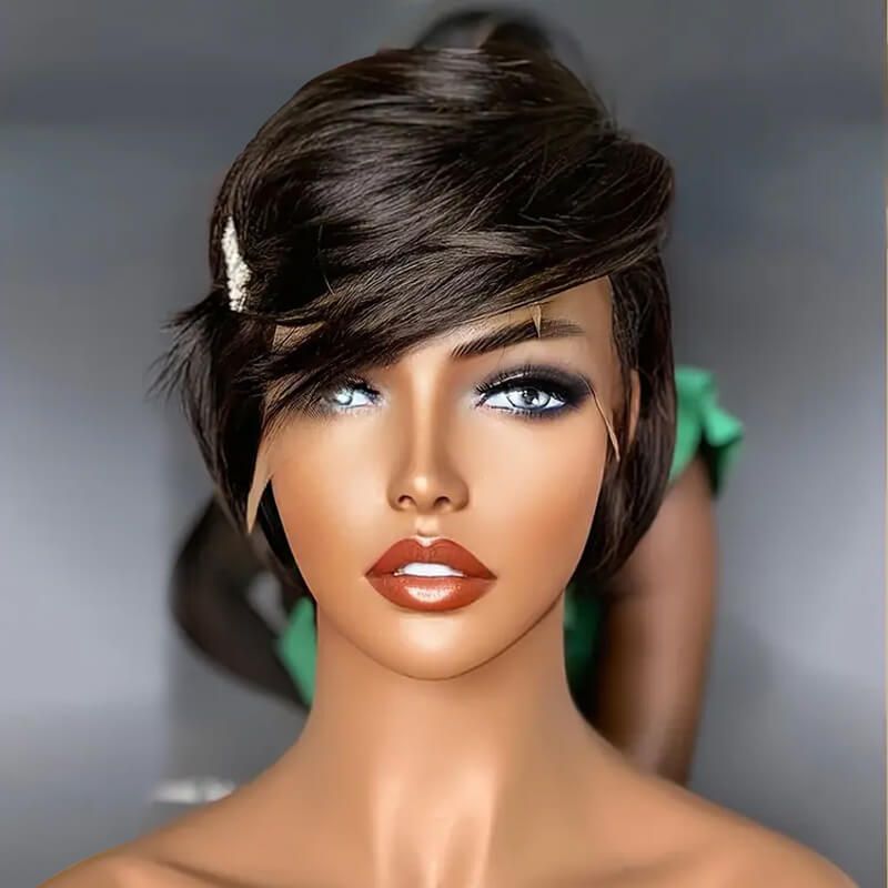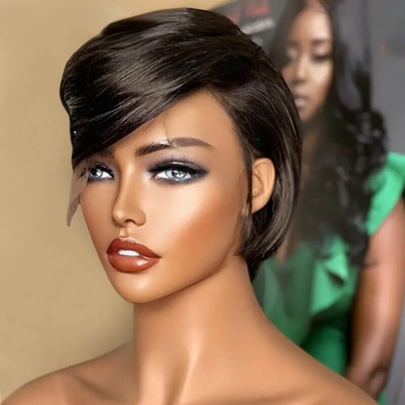 Pixie Cut Bob Wigs Side Part Closure Lace Wig