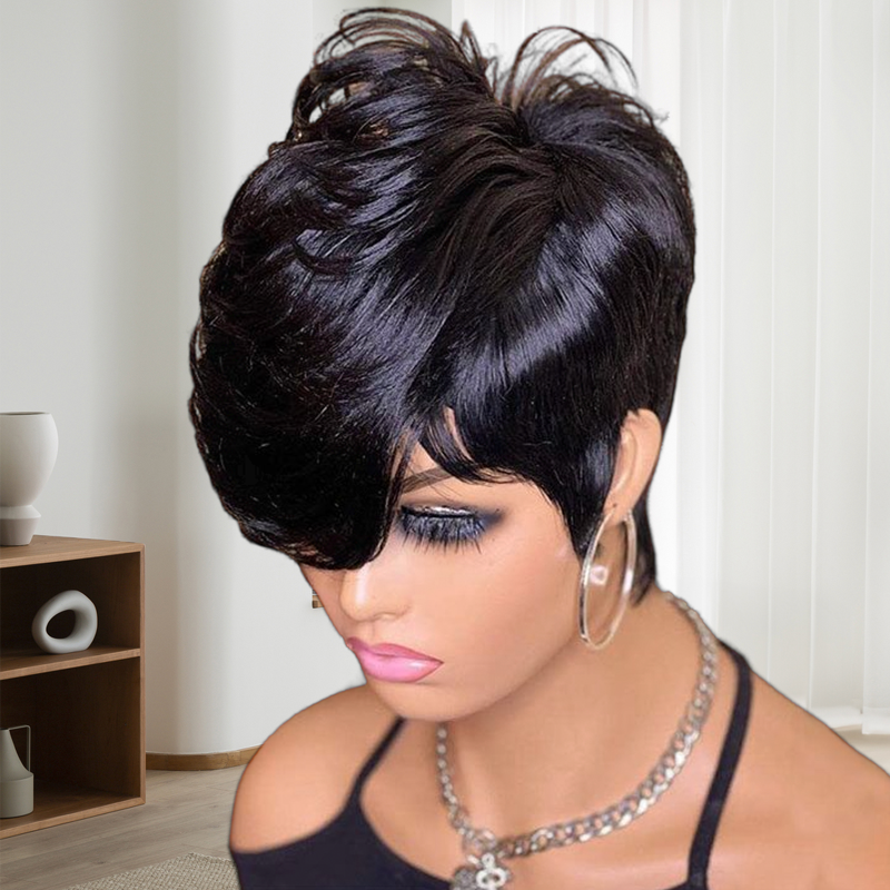 Human Hair Pixie Cut Lace Front Wig with Bangs