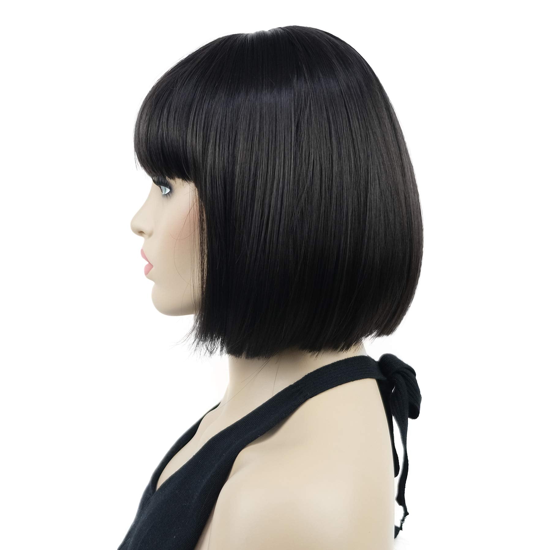 Black Wig for Women Black Bob Wig Short Black Wig Straight Black Wigs Middle Part Synthetic Heat Resistant Cosplay Costume Party Wigs