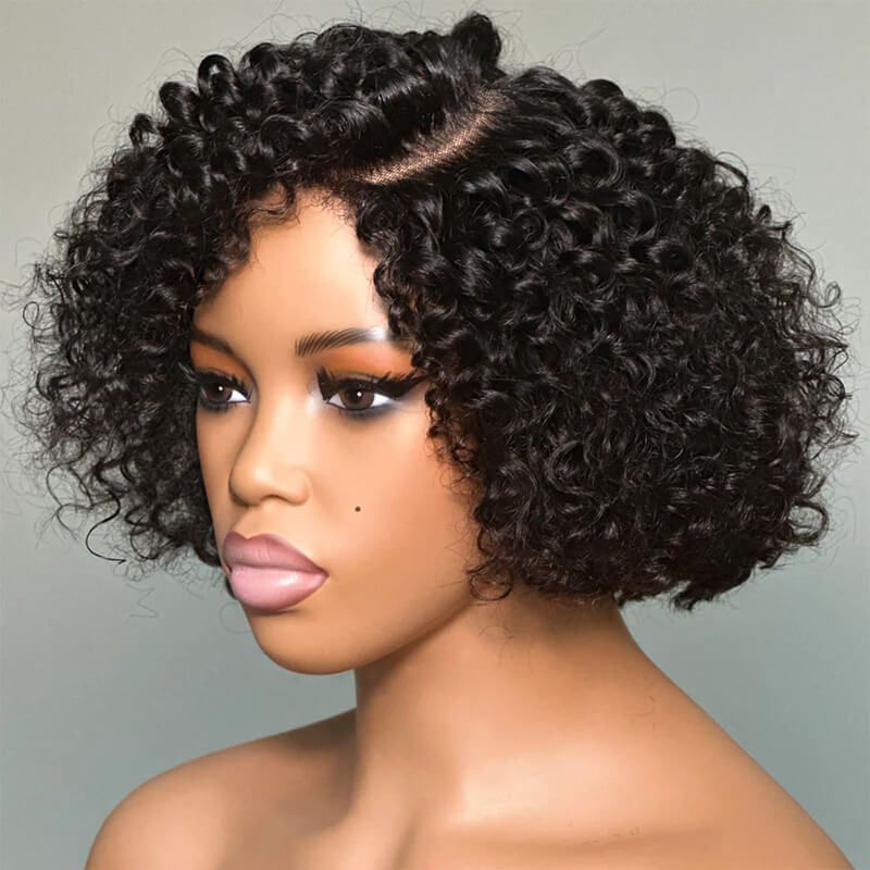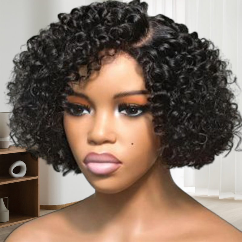 Glueless Short Curly Pre Cut Closure Lace Wig