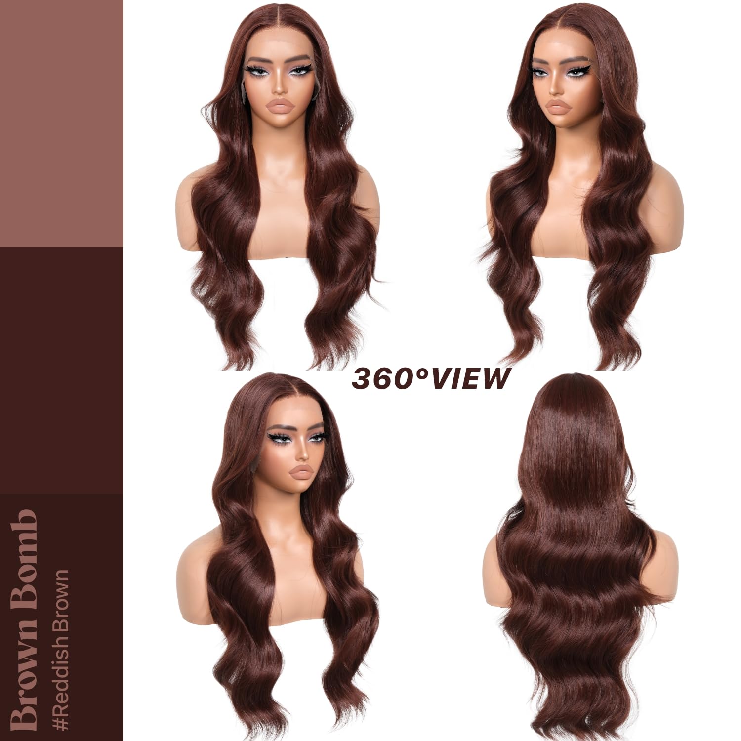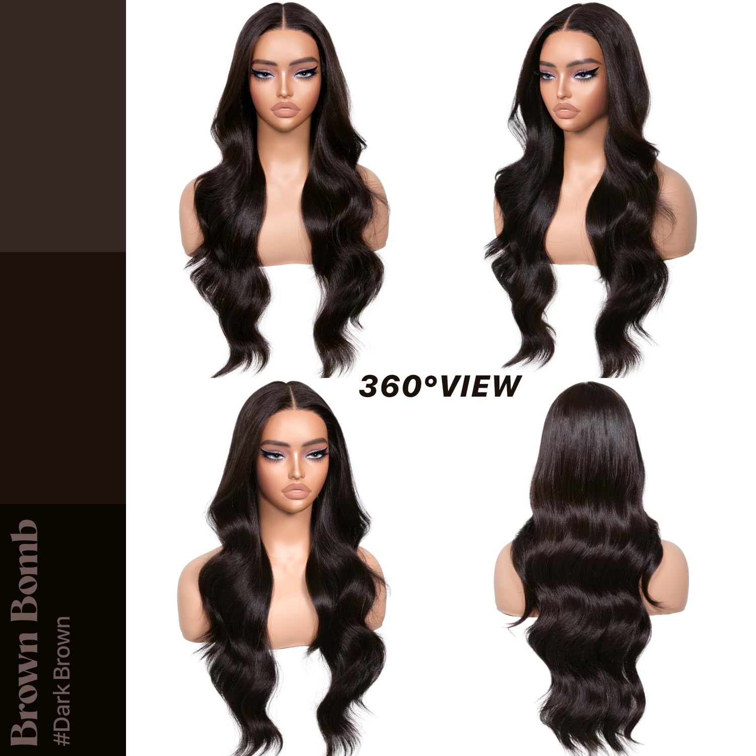 Dark Brown Synthetic Lace Front Wigs Body Wave Glueless Wigs With Bangs
