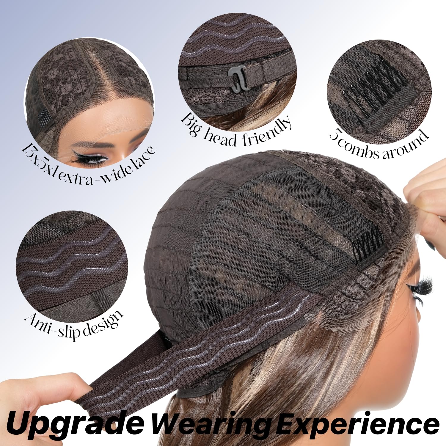 Wig cap: 21.5inch, Comfortable fit on female head
