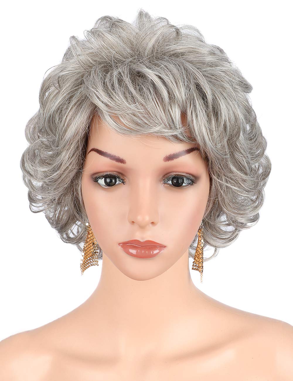 Salt And Pepper Short Bob Wig Lace Front Wig with Side Bangs