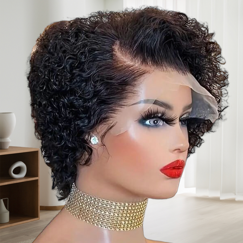 Pixie Cut Bob Wigs Short Curly Side Part Lace Front Wig