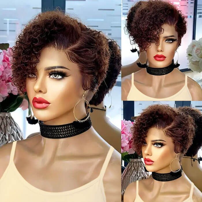 Pixie Cut Brown Curly Short Bob Wig Wigs For Women