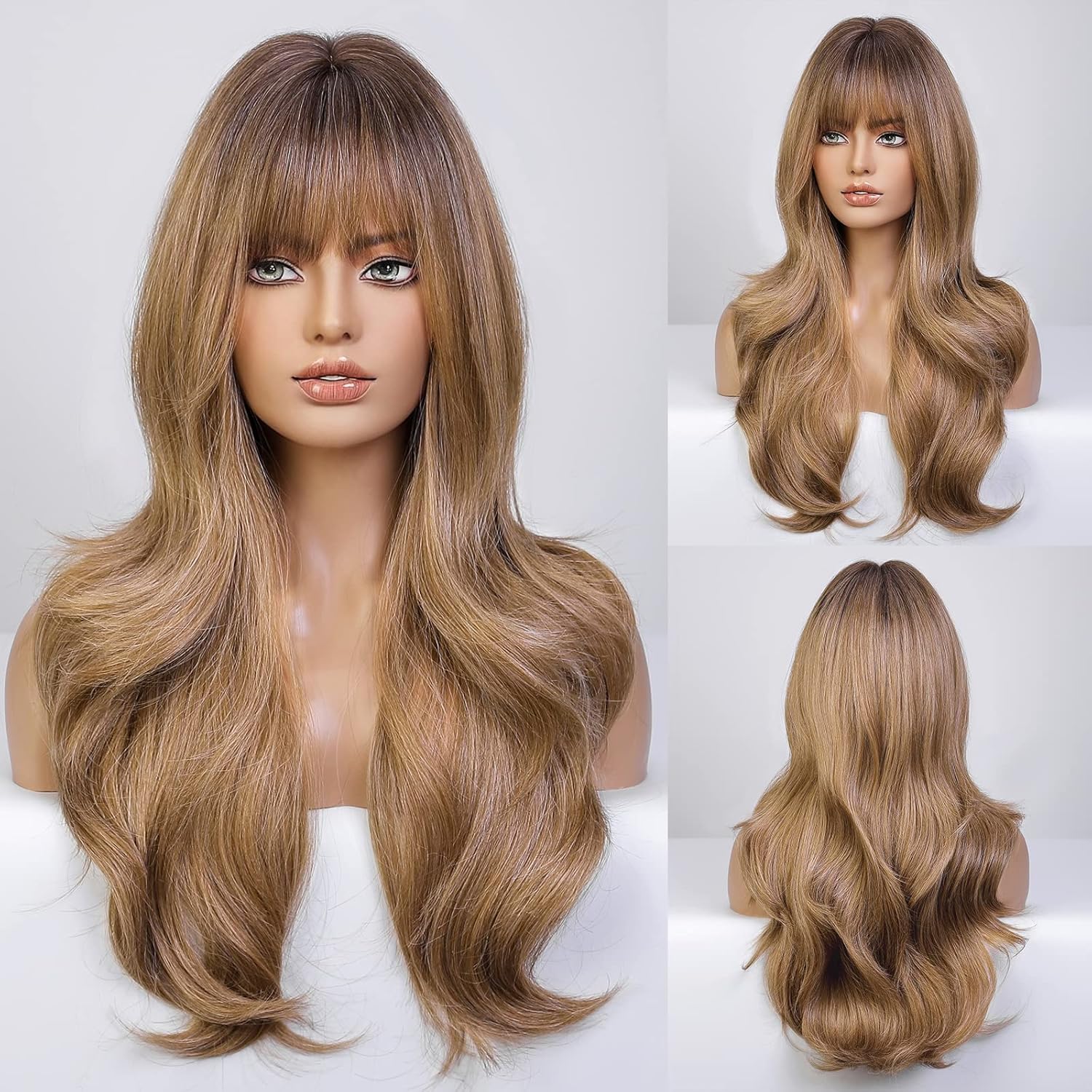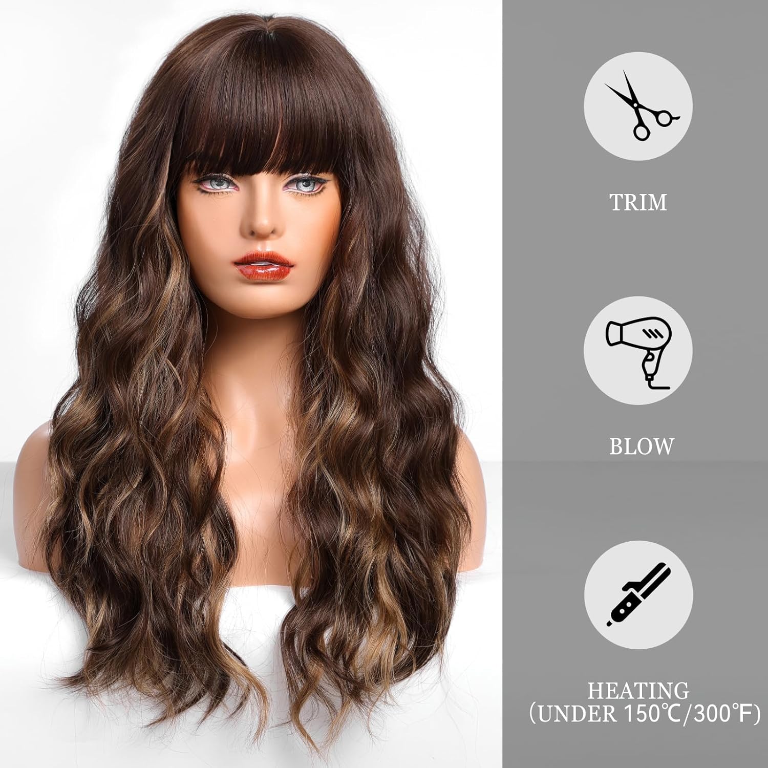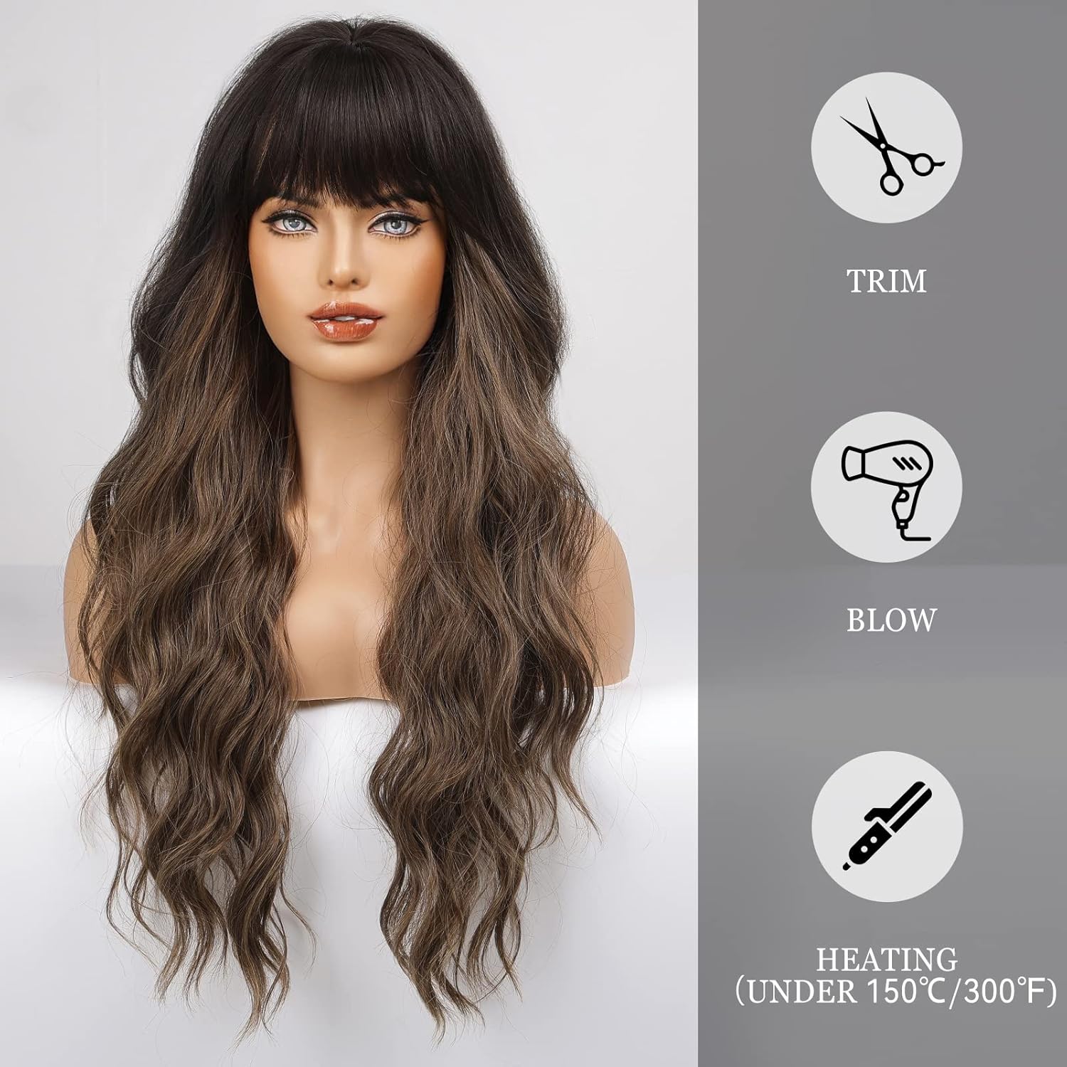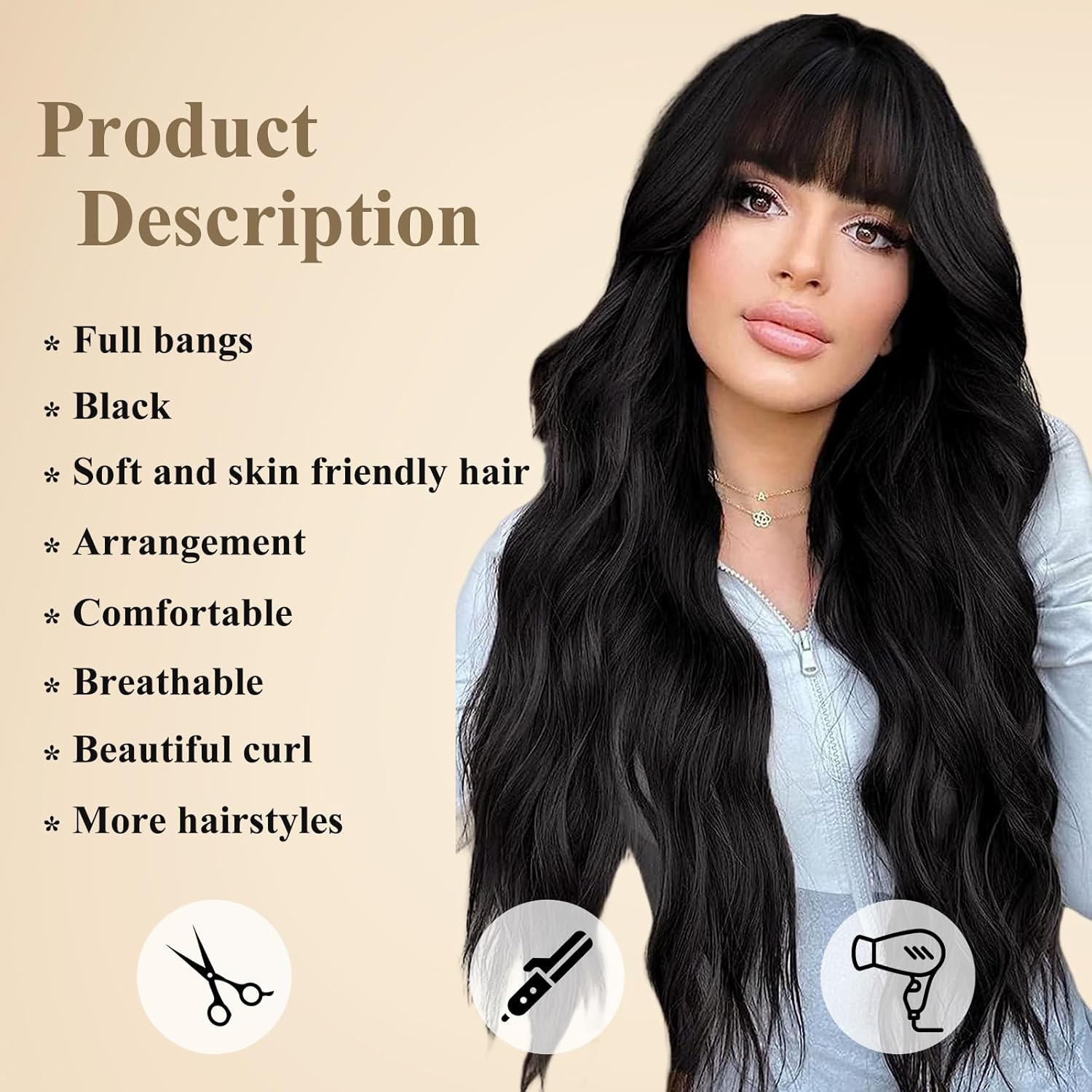 • 【Hair Material】Long Curly hair is made of high-quality heat-resistant synthetic fiber. The magic of this wig is that, through the improvement of traditional technology, natural bangs are added to make your hair more natural, soft, without hurting the skin, and tasteless.