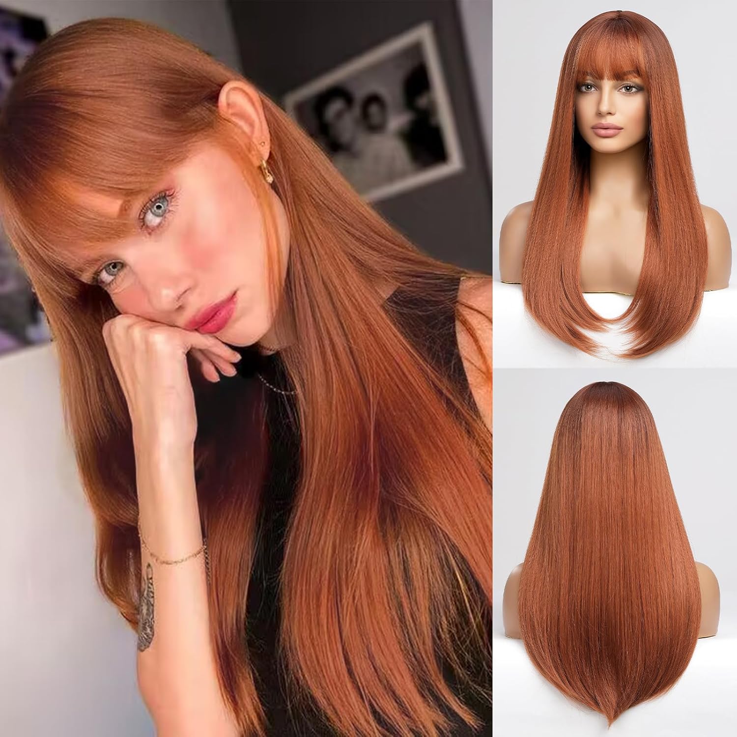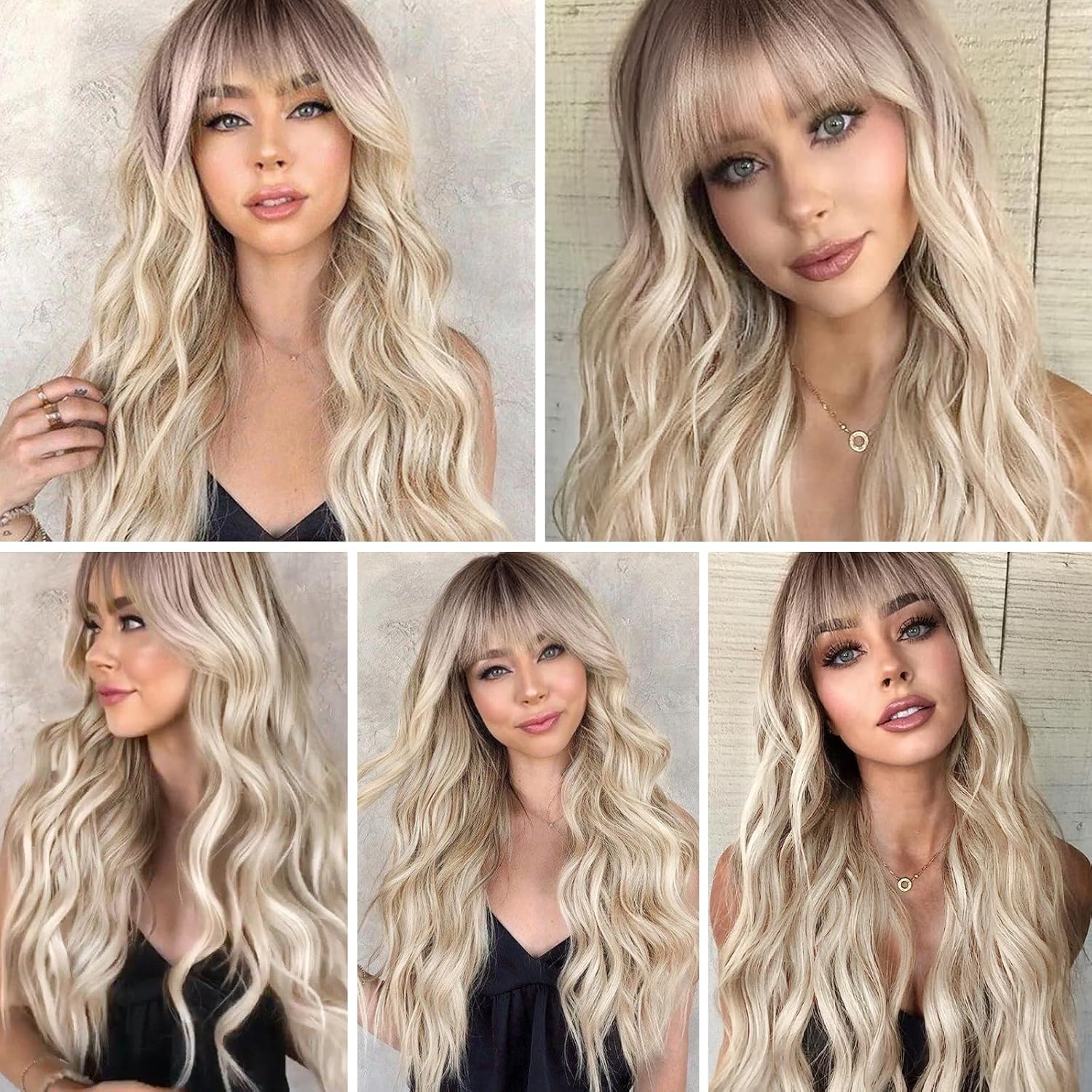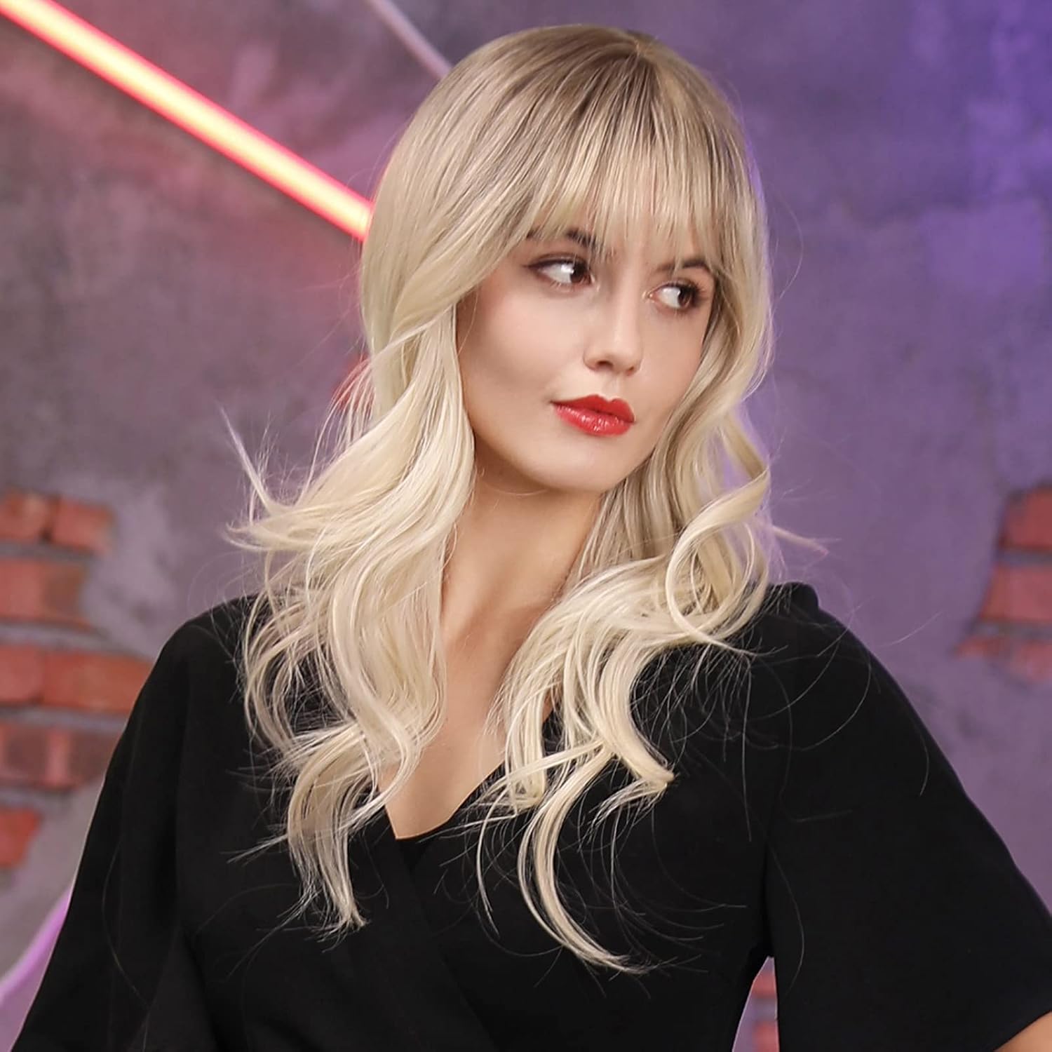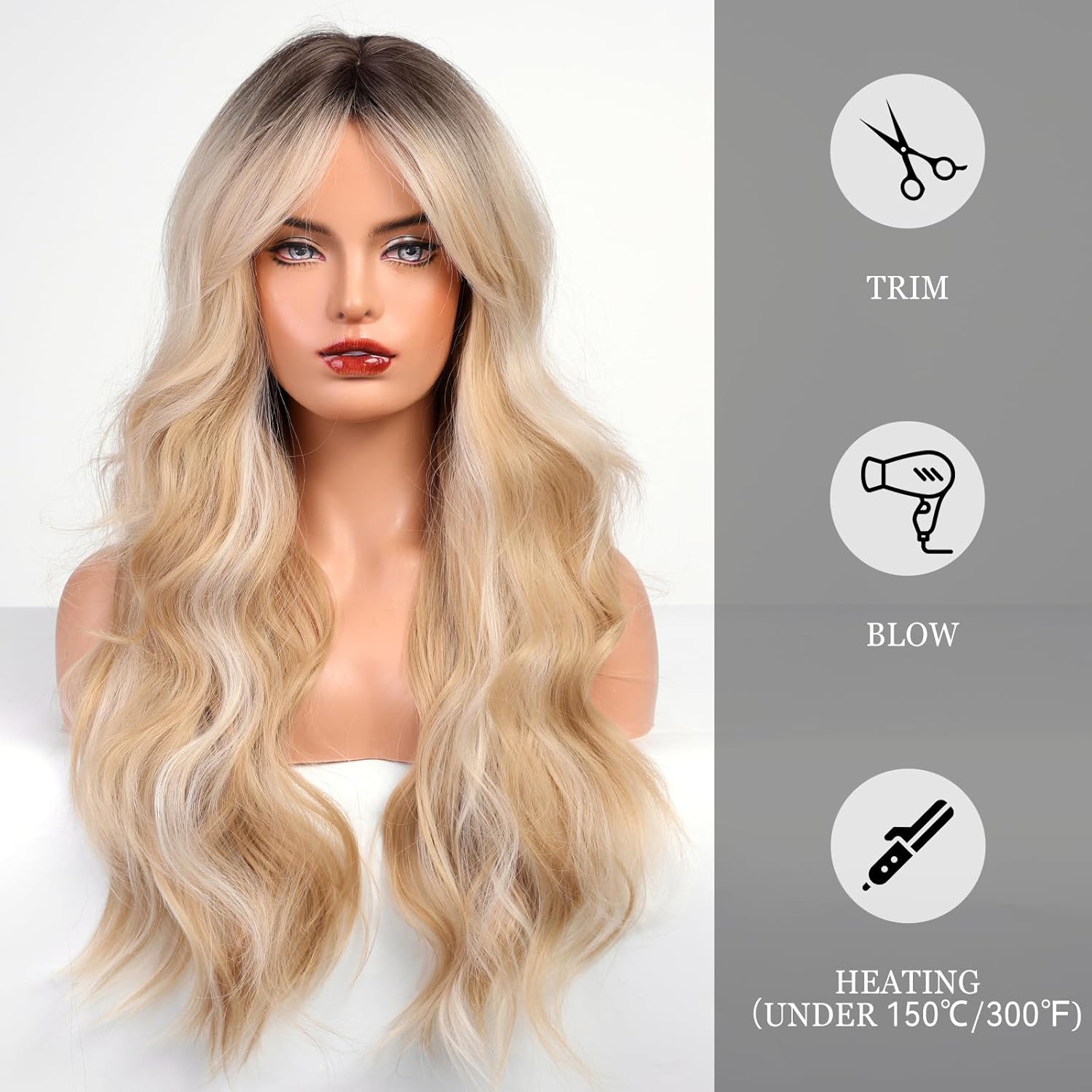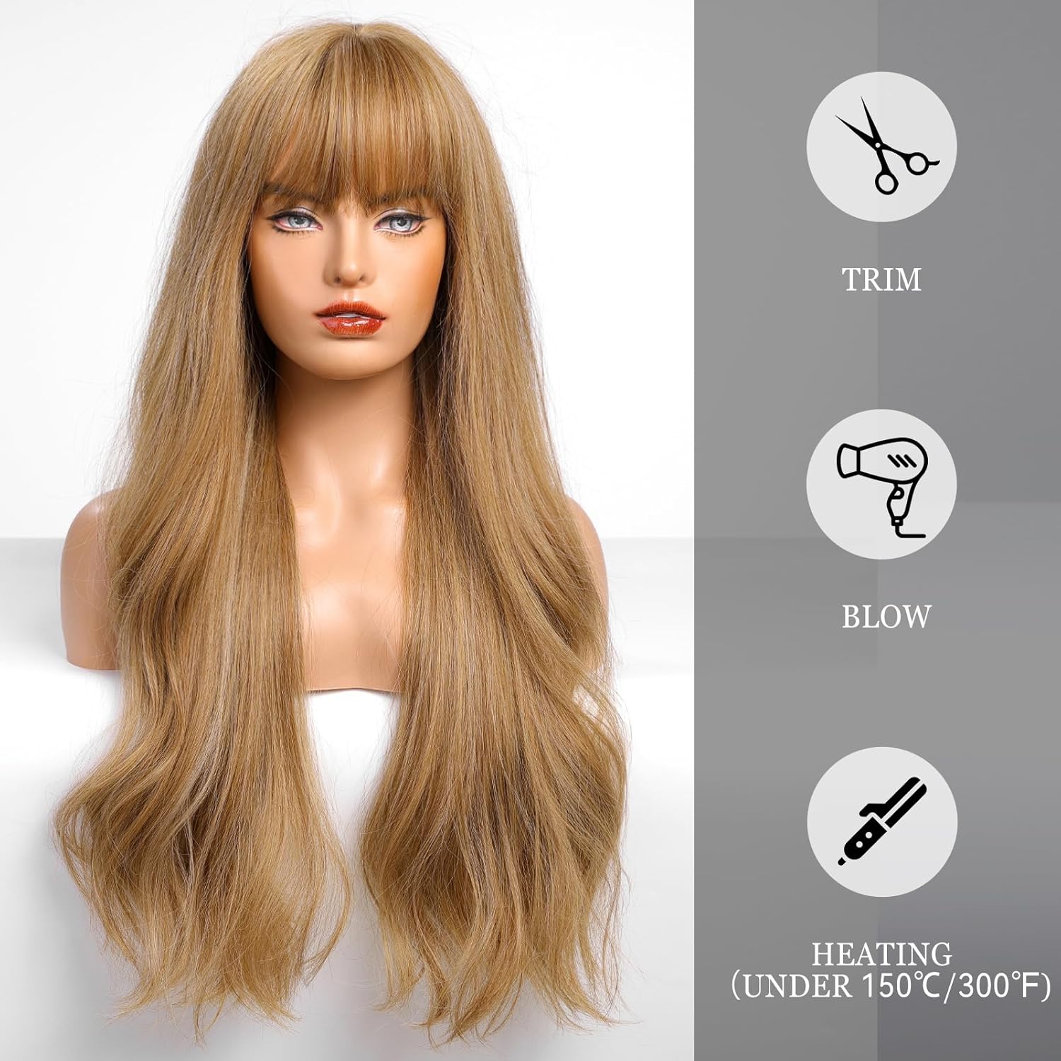 • 【Hair Material】Long Curly hair is made of high-quality heat-resistant synthetic fiber. The magic of this wig is that, through the improvement of traditional technology, natural bangs are added to make your hair more natural, soft, without hurting the skin, and tasteless.