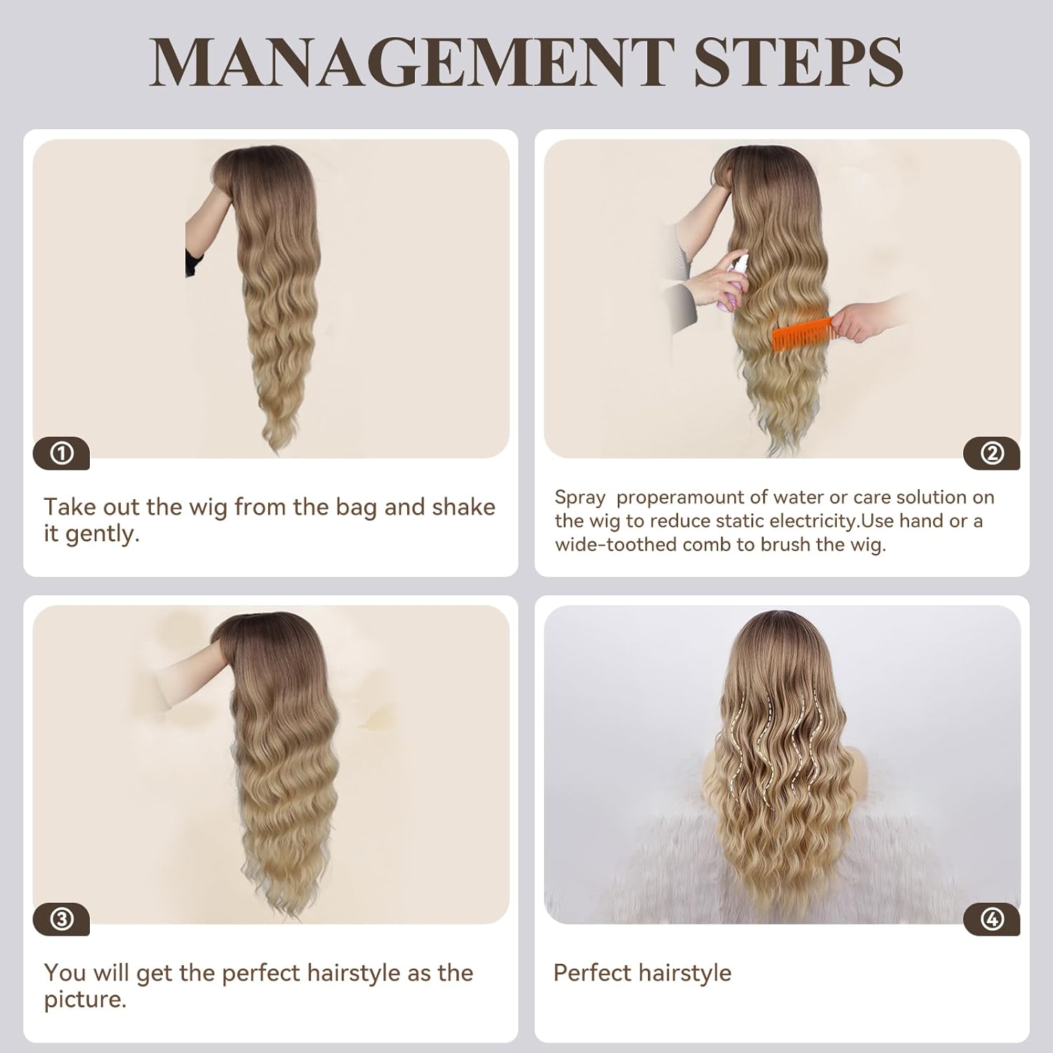 • 【Wig Style】 Long curly hair is the first choice for women's hair style at present, because it can not only modify the face shape, but also suitable for all daily and special occasions. This wig is comfortable, soft and fashionable. We hope you are beautiful! Keep beautiful!
