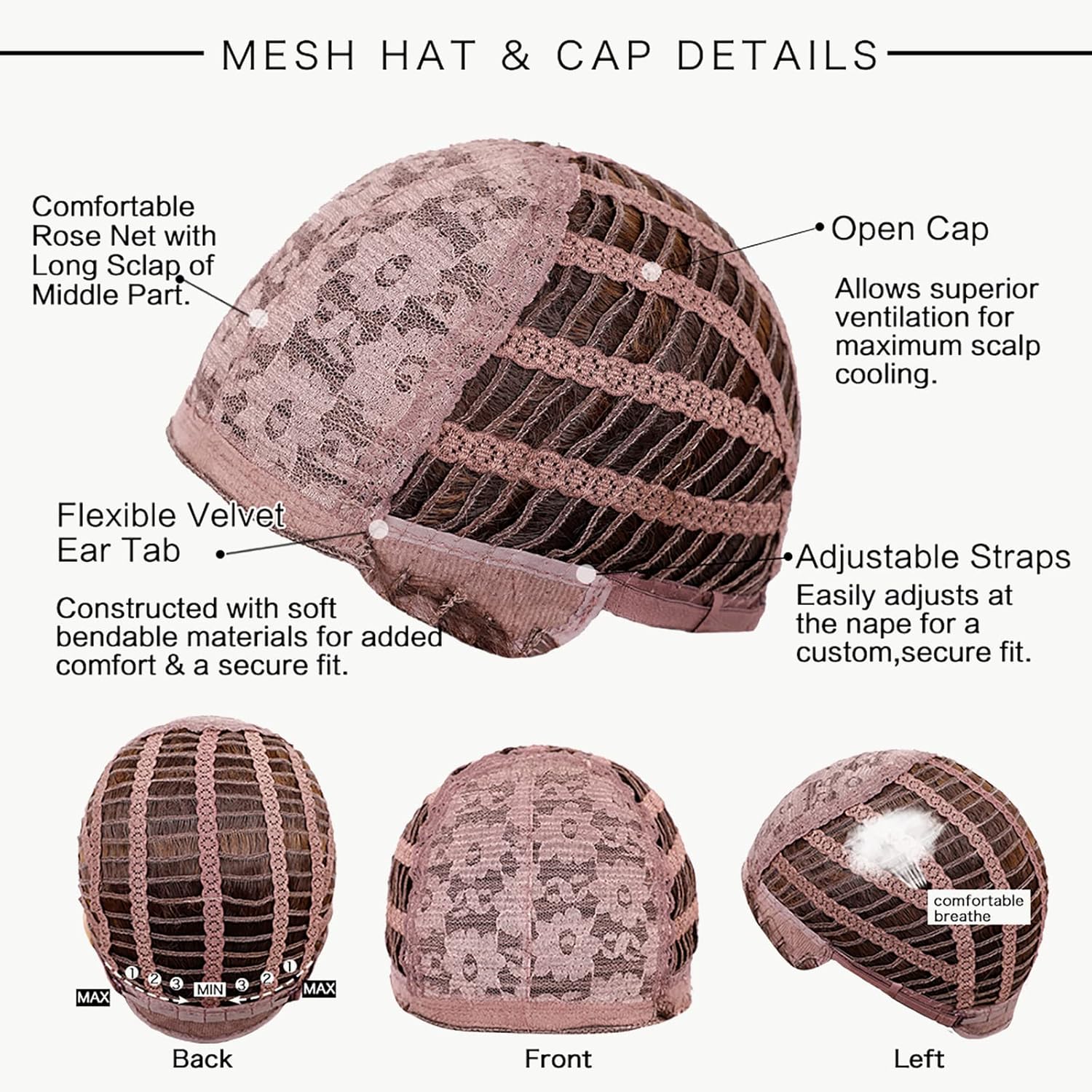• 【Wig Cap Structure】The hairnet of the Wigsnice ​wig is an average size, between 21.5 and 22.5 inches. It fits most people's heads. It is comfortable, light and breathable, and does not put pressure on the head.