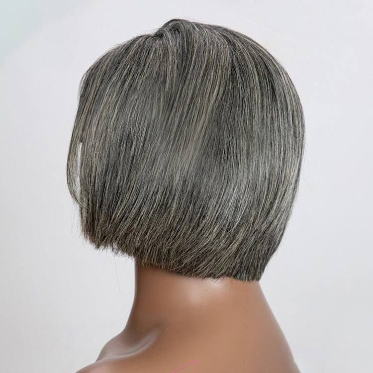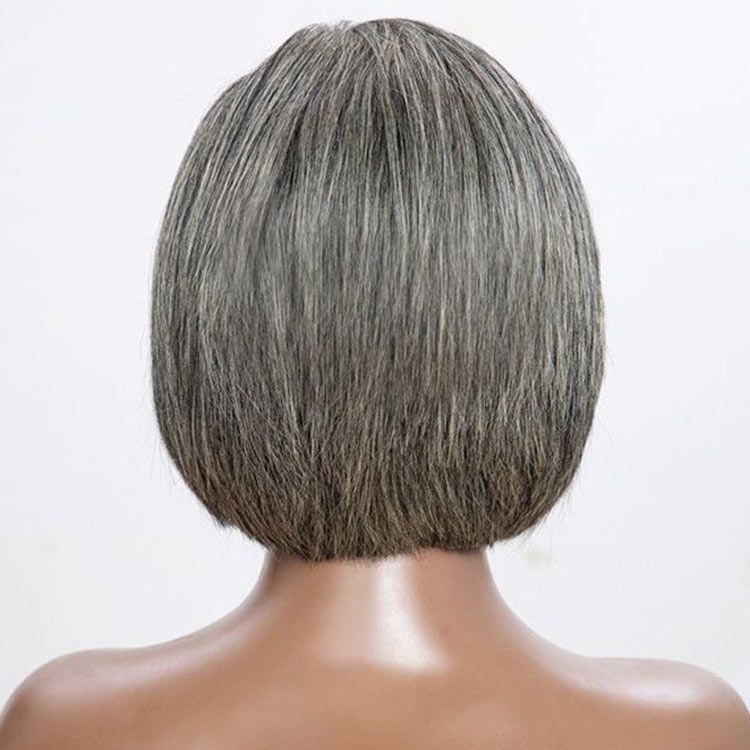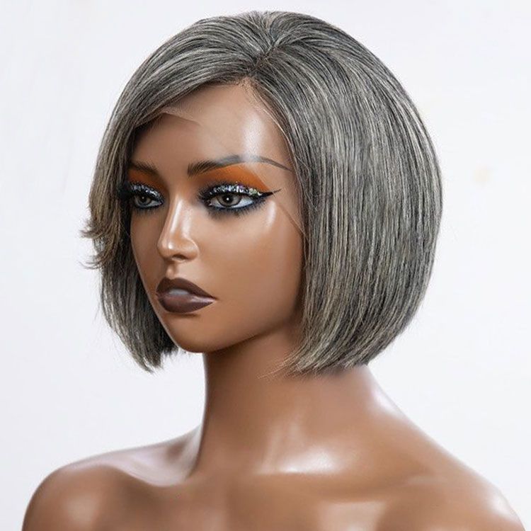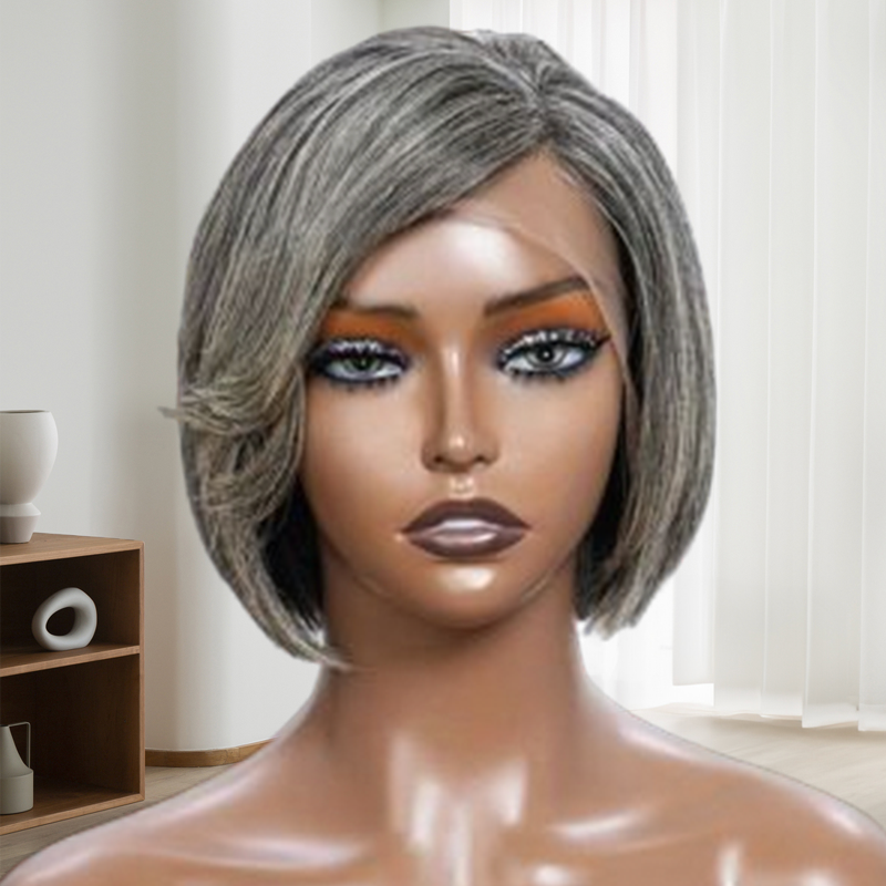 Salt And Pepper Short Bob Wig Lace Front Wig with Side Bangs