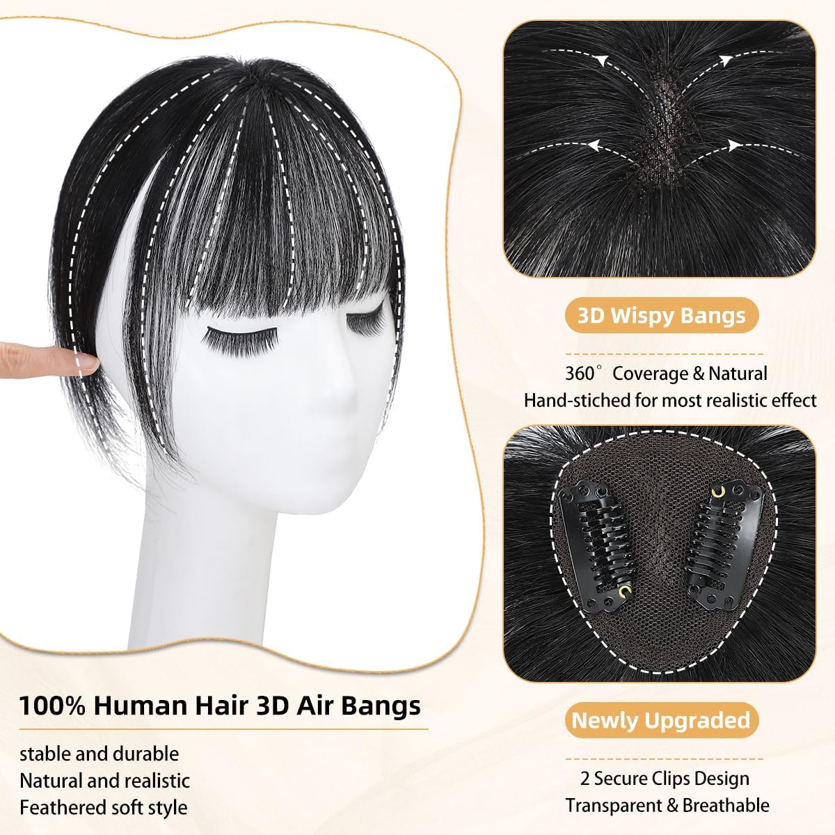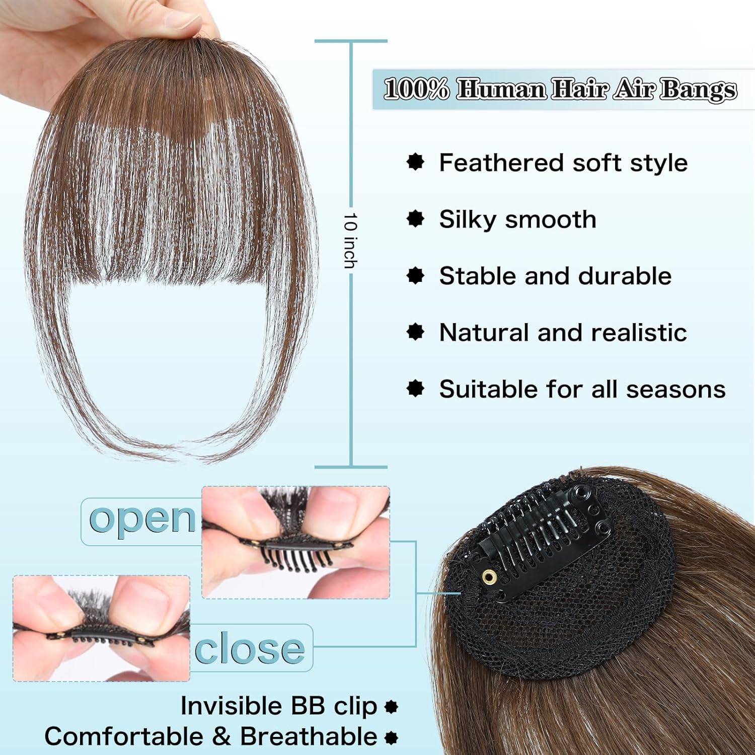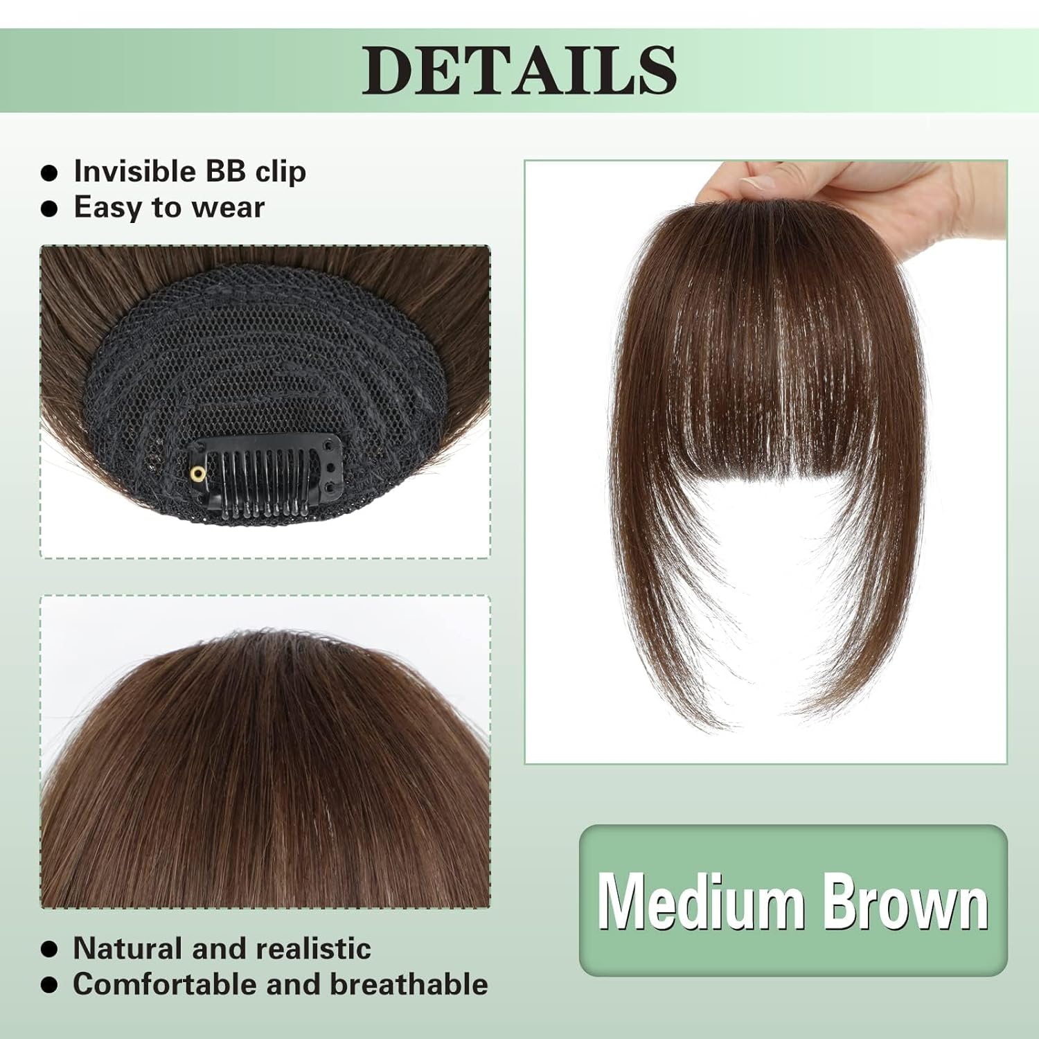 • Bangs: High quality clip-on bangs, shiny, soft and smooth like your own hair. Create the most lustrous and realistic natural effect. Can be curled, straightened or dyed into other colors and styles according to your preferences. The bangs may become messy after long-term transportation, please wash with water and blow dry, then make it as you like.
