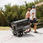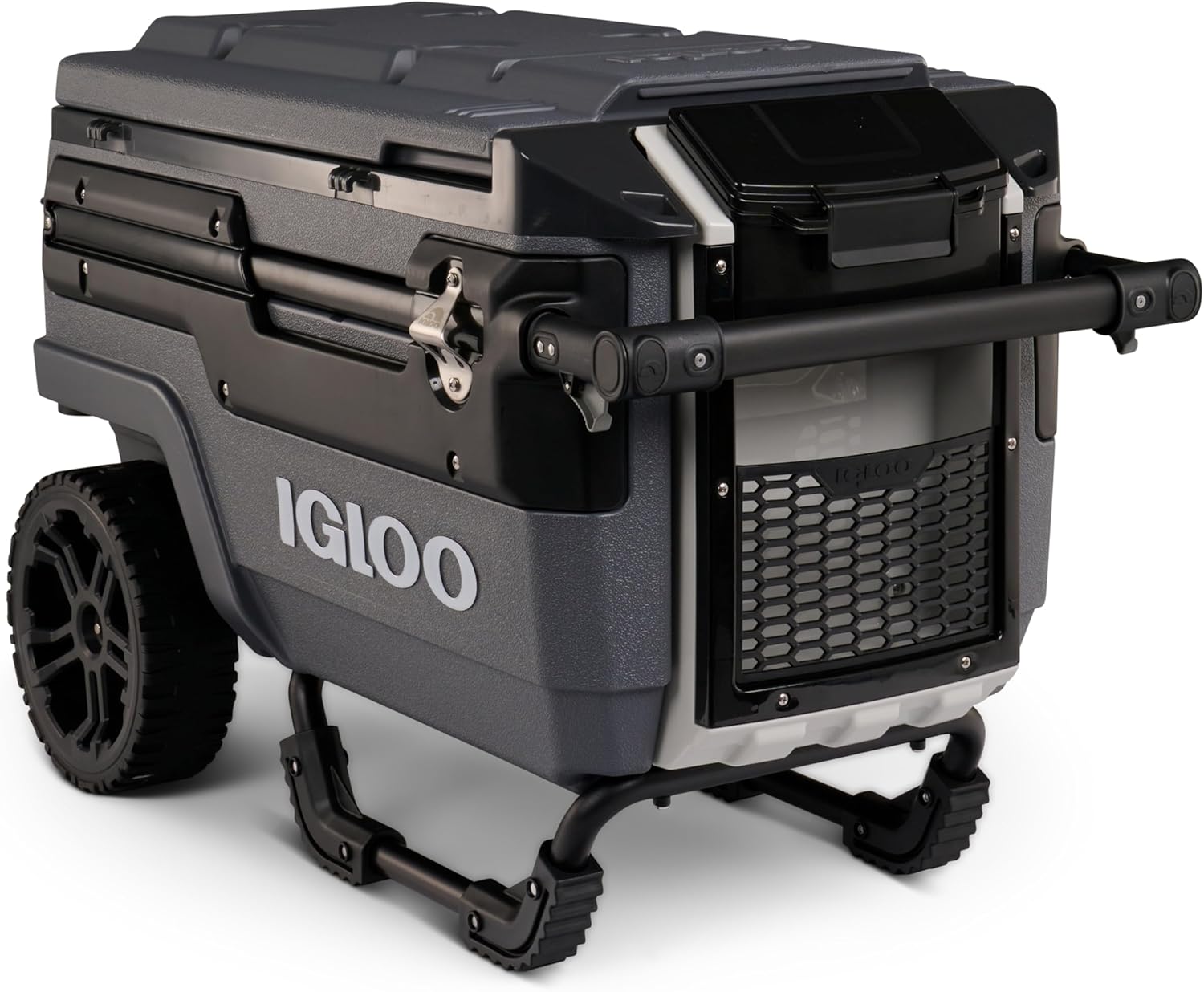 Our rugged Trailmate cooler has oversized, all-terrain wheels and a sturdy telescoping handle, so you can easily and smoothly roll it to your destination.