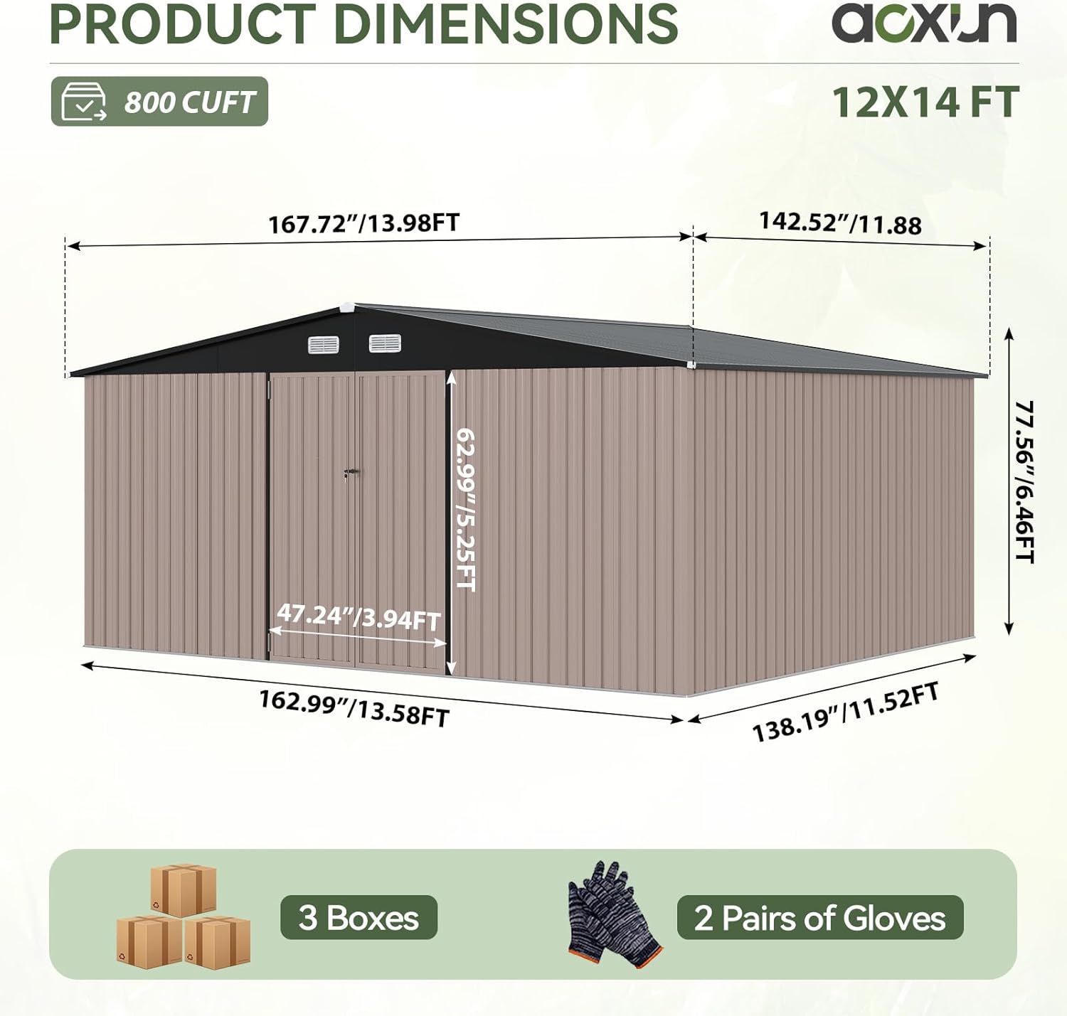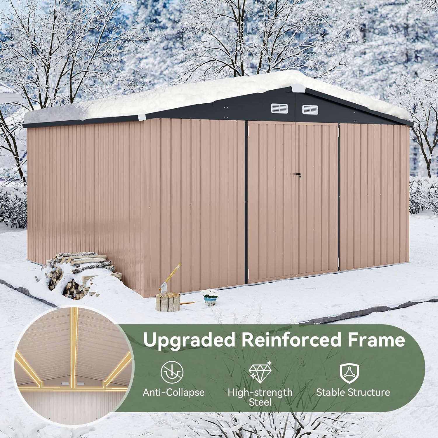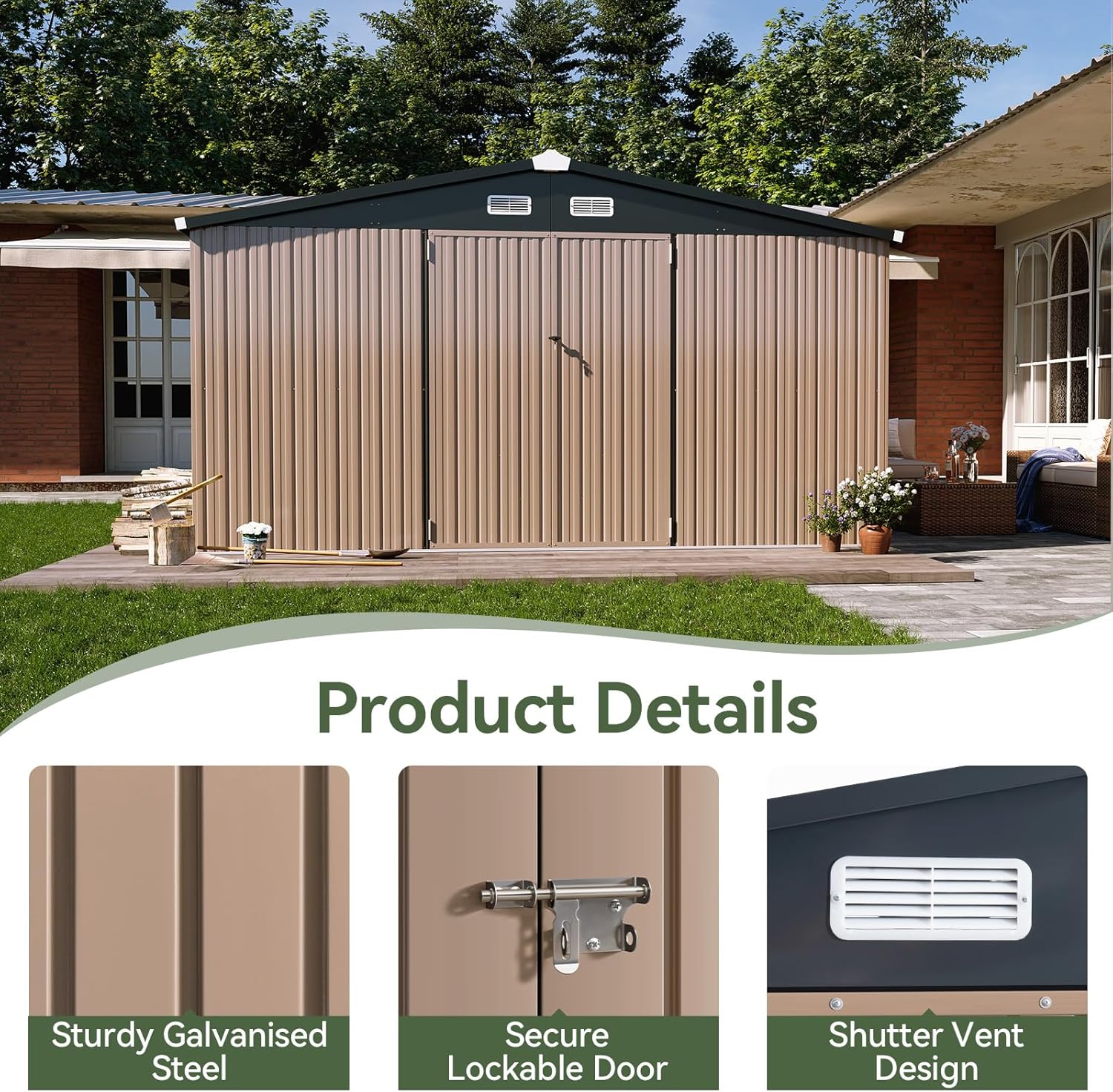 Aoxun 12x10 FT Shed Metal Outdoor Waterproof Storage Shed Steel Utility Garden Tool Shed with Door & Lock Outdoor Storage for Garden Patio Lawn Poolside, Brown