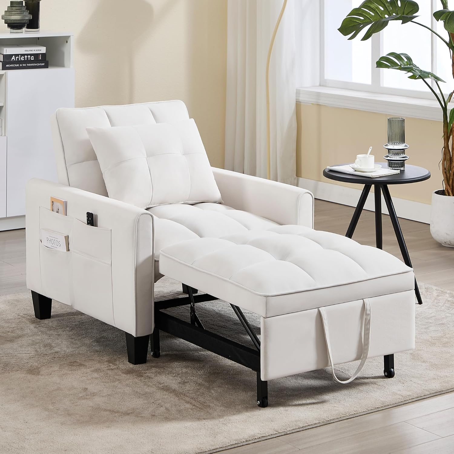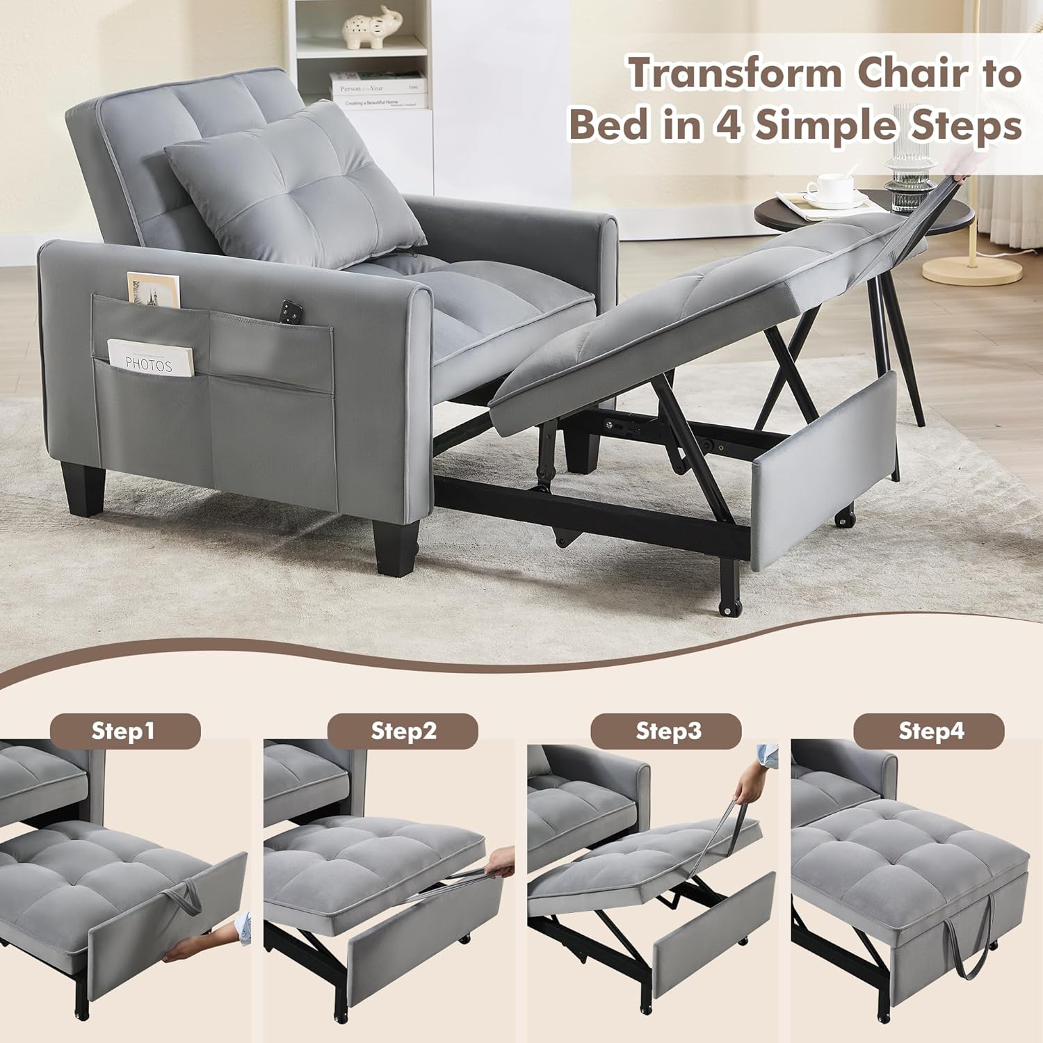Convertible Sleeper Chair, 3 in 1 Sleeper Chair Bed Pull Out Sofa Bed Chairs, Velvet Single Sofa with Adjustable Backrest