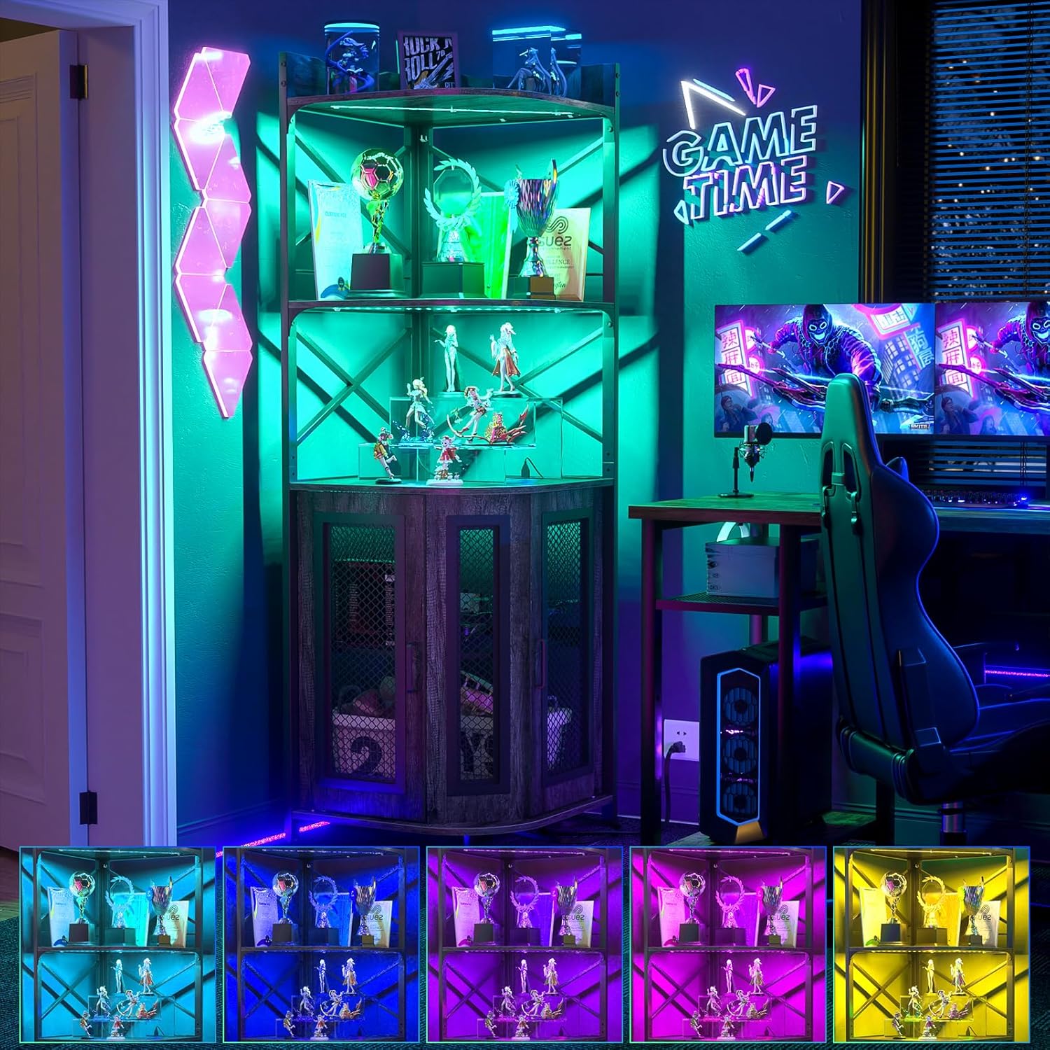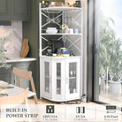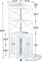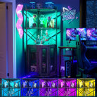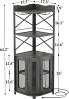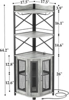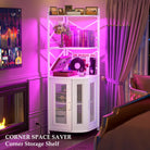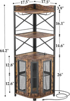 Corner bar cabinet with power socket, industrial style wine cabinet with LED light strip and glass rack, home five-layer wine cabinet bar unit, small space corner display cabinet