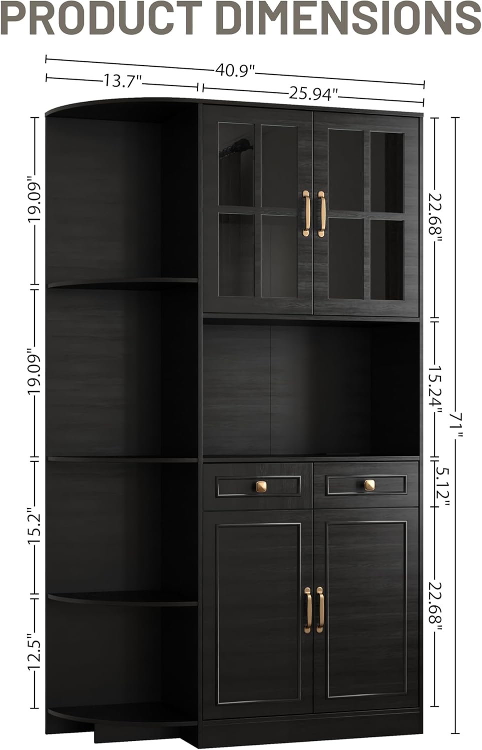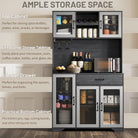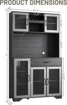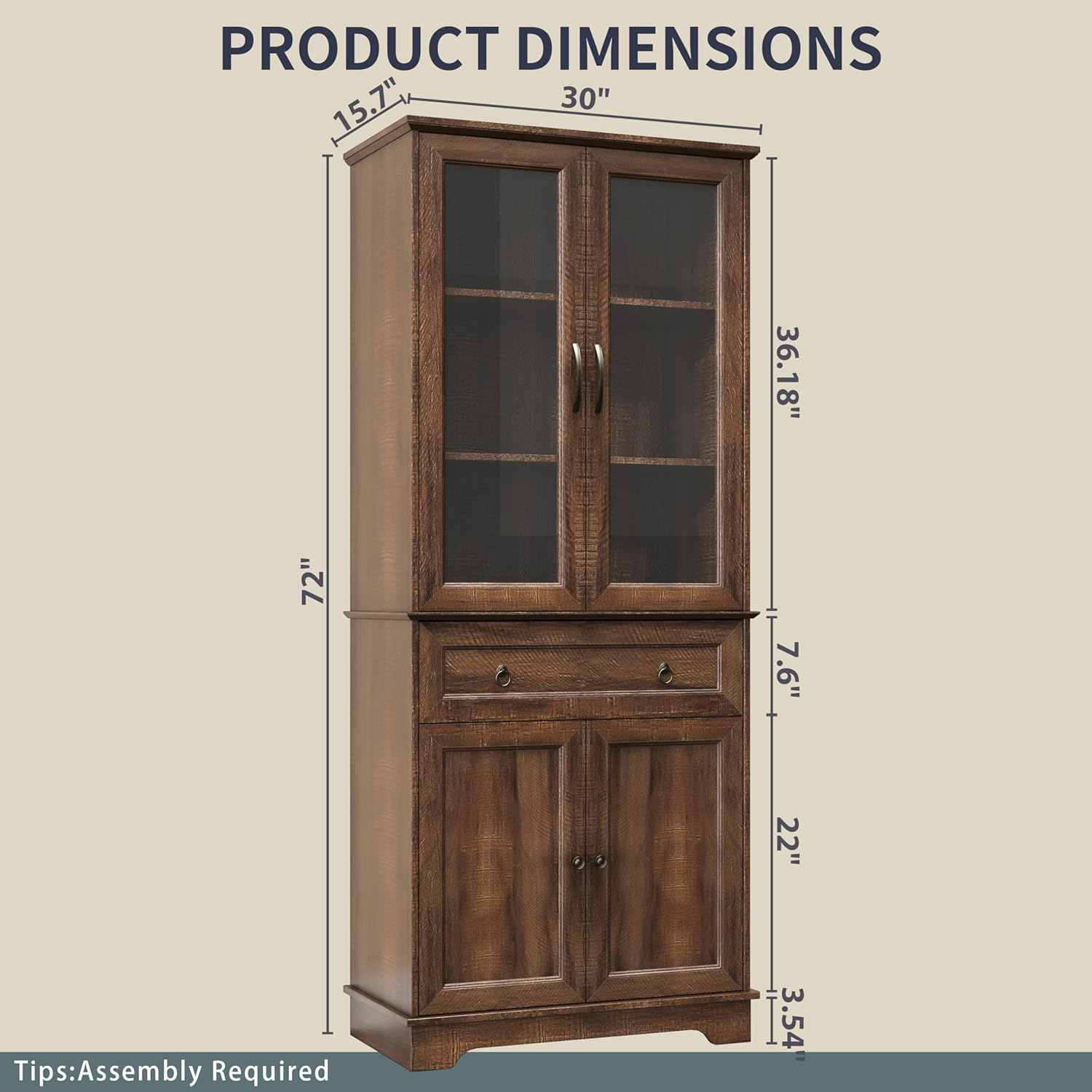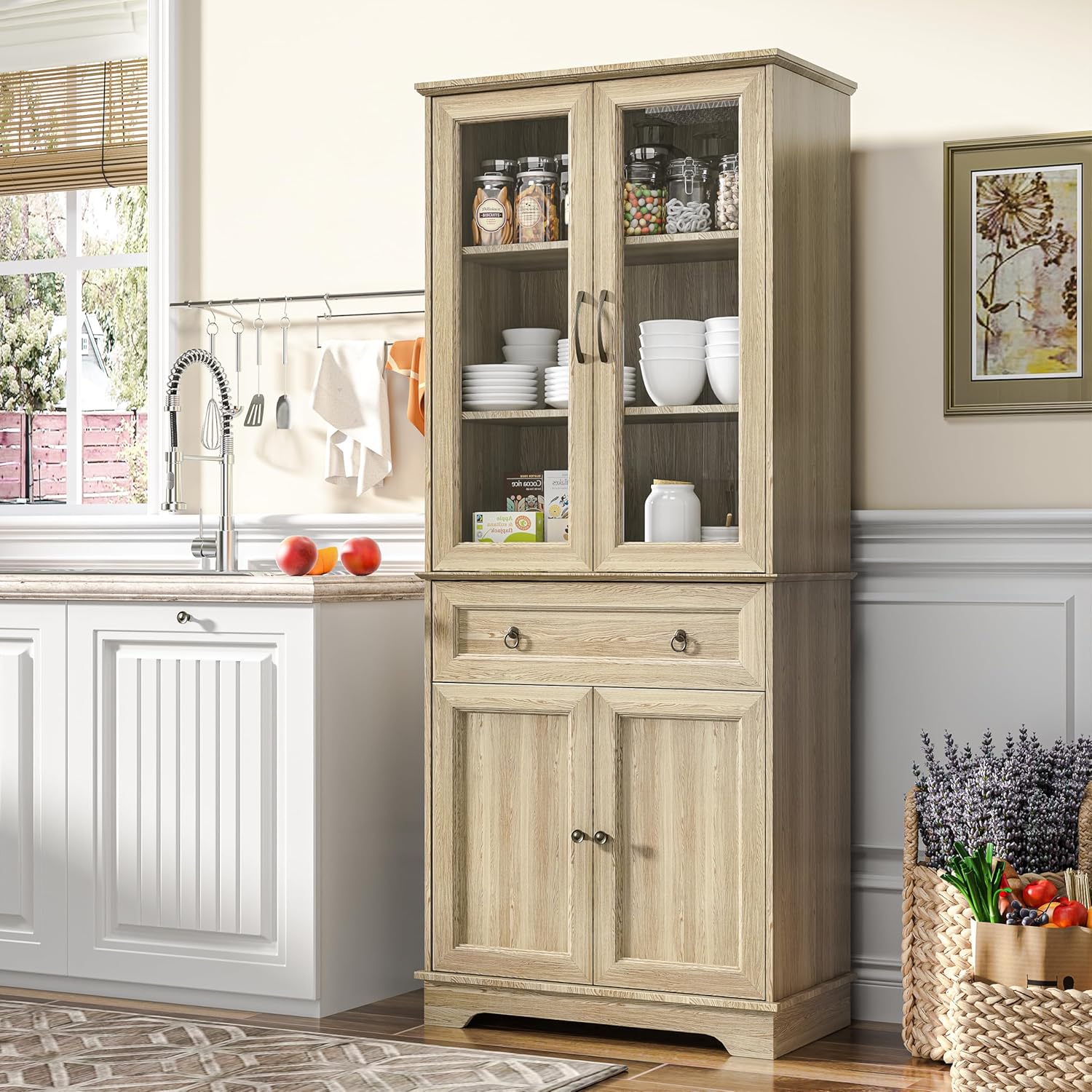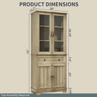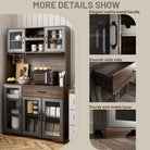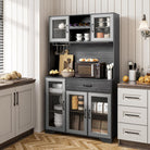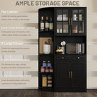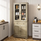 Kitchen Hutch Pantry Cabinet 71" Tall with Glass Doors