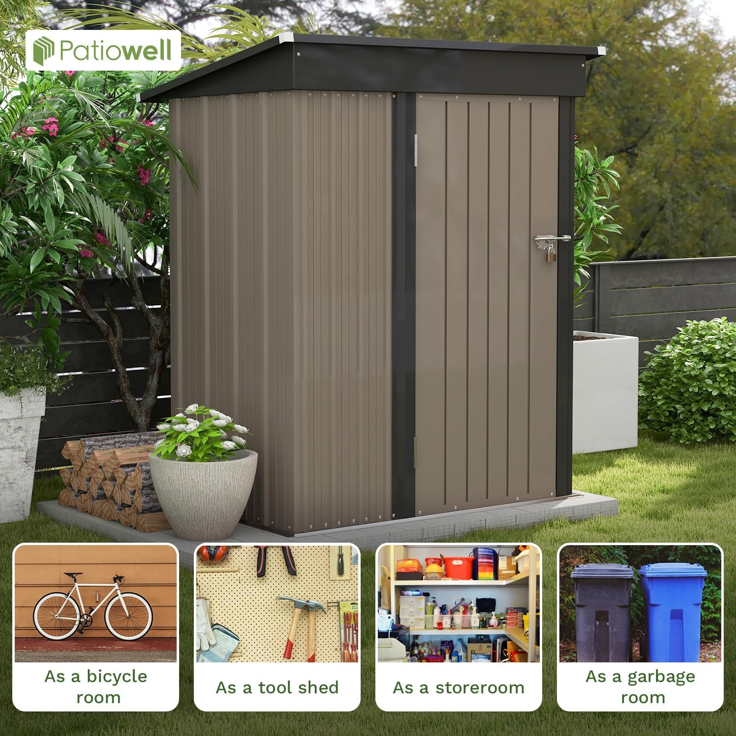 Patiowell 5x3 FT Outdoor Storage Shed, Tool Shed with Sloping Roof and Lockable Door, Metal Shed for Backyard Garden Patio Lawn, Brown