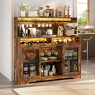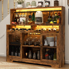 Wine Bar Cabinet with LED Light, Liquor Cabinet with Glass Holder, Coffee Bar for Liquor, Storage Buffet with Wine Racks, Wine Cabinet