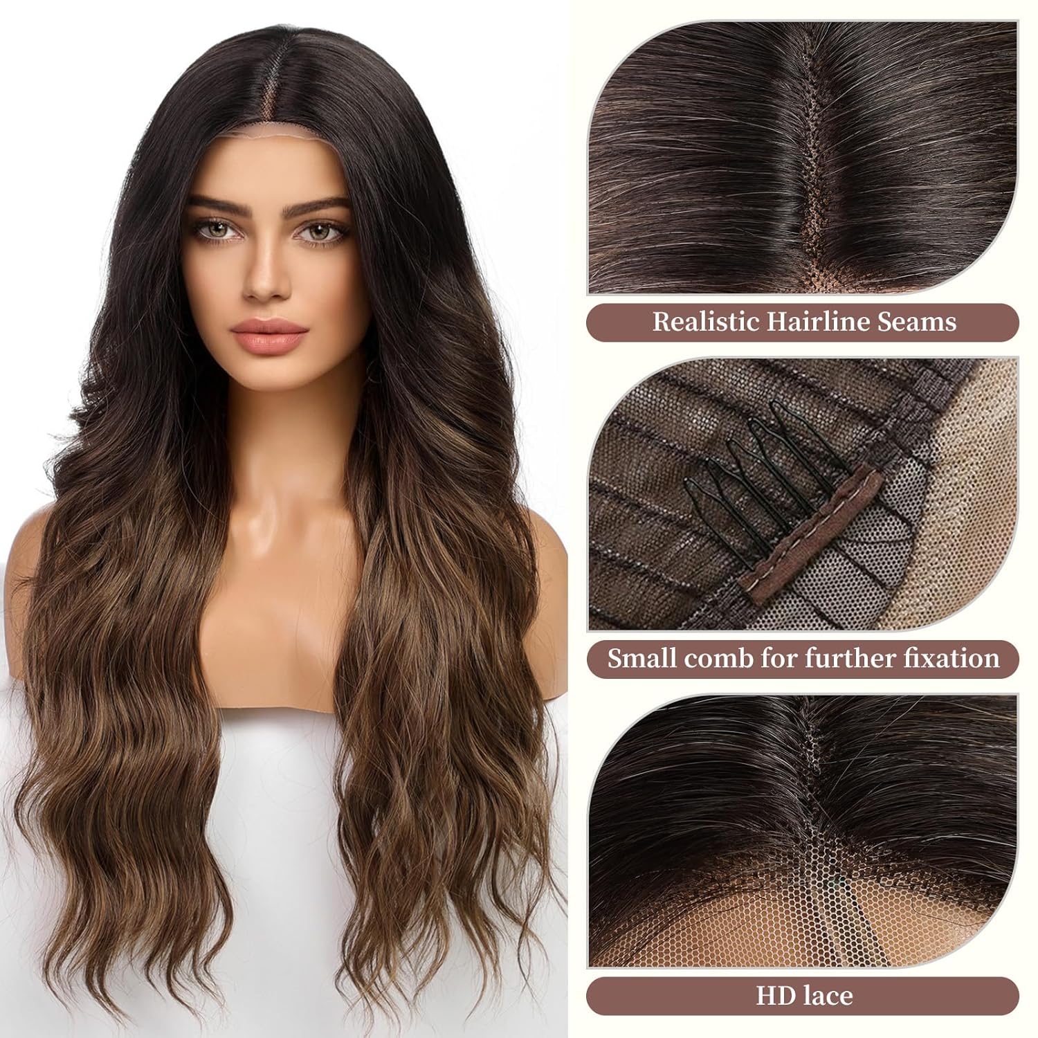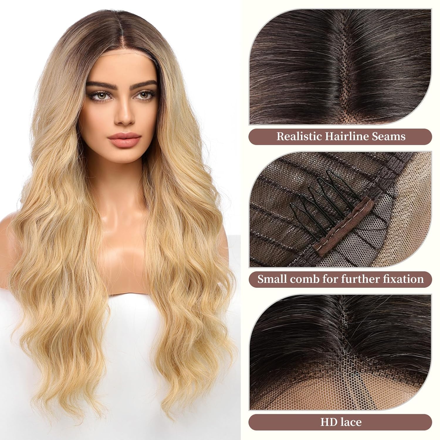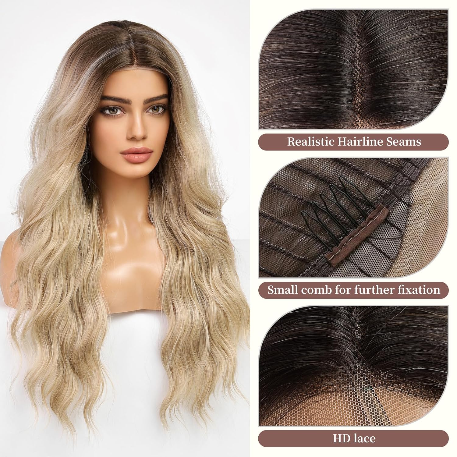 - 【Premium Material】The long wave wig is made of heat-resistant synthetic fibers, with soft hair and upgraded craftsmanship, making it more natural, soft, skin friendly, and odorless to wear.