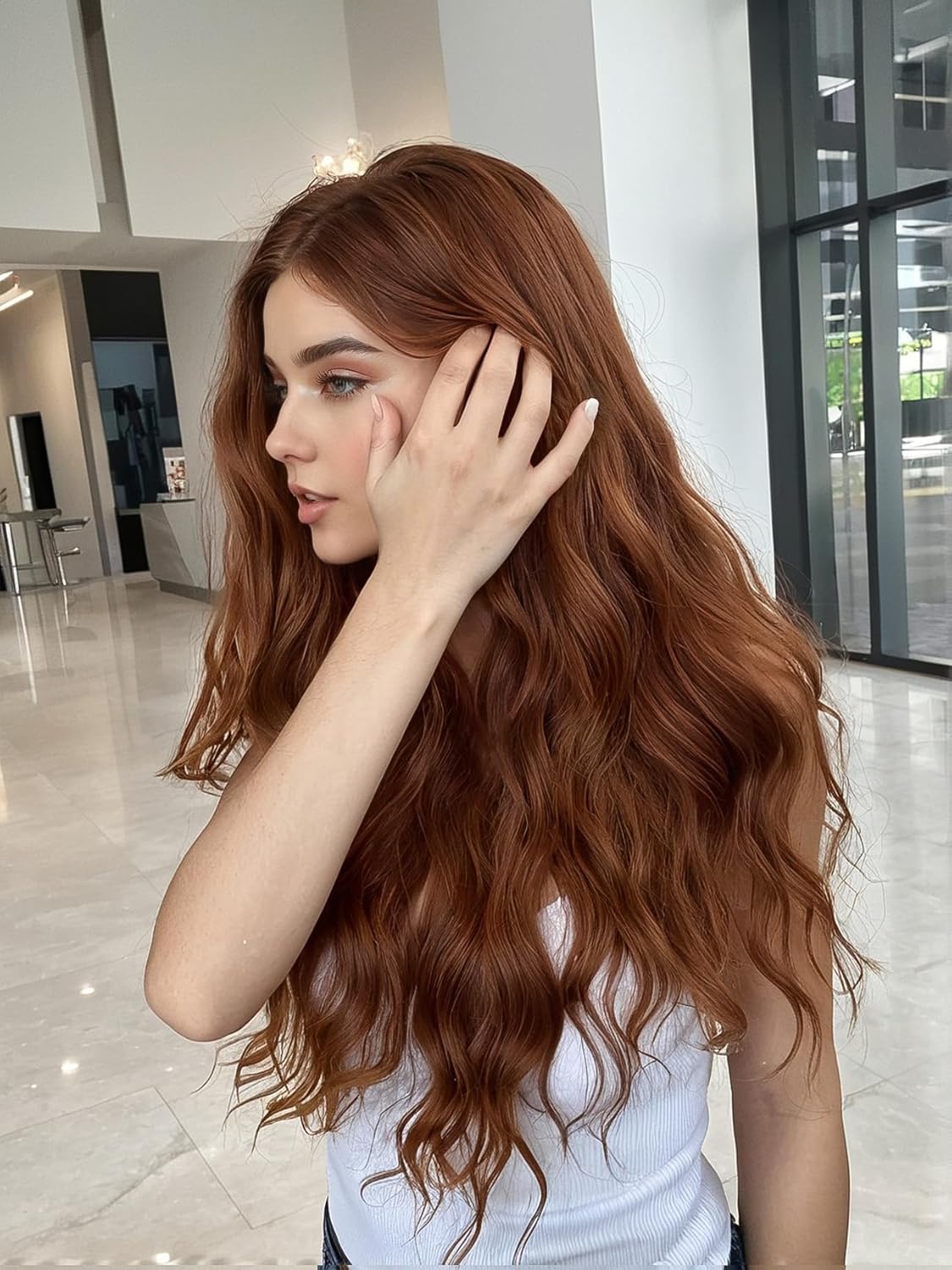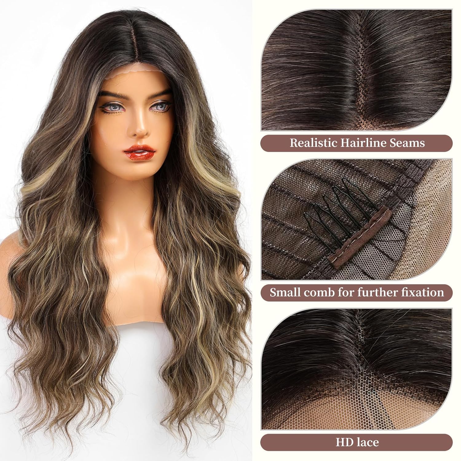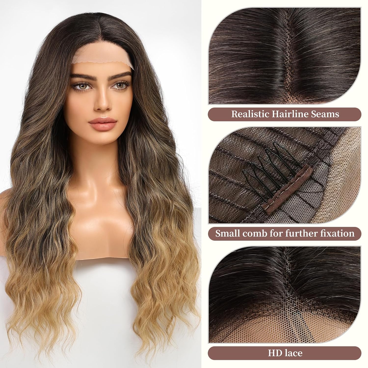 - 【Premium Material】The long wave wig is made of heat-resistant synthetic fibers, with soft hair and upgraded craftsmanship, making it more natural, soft, skin friendly, and odorless to wear.