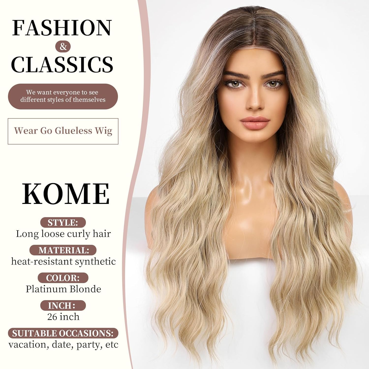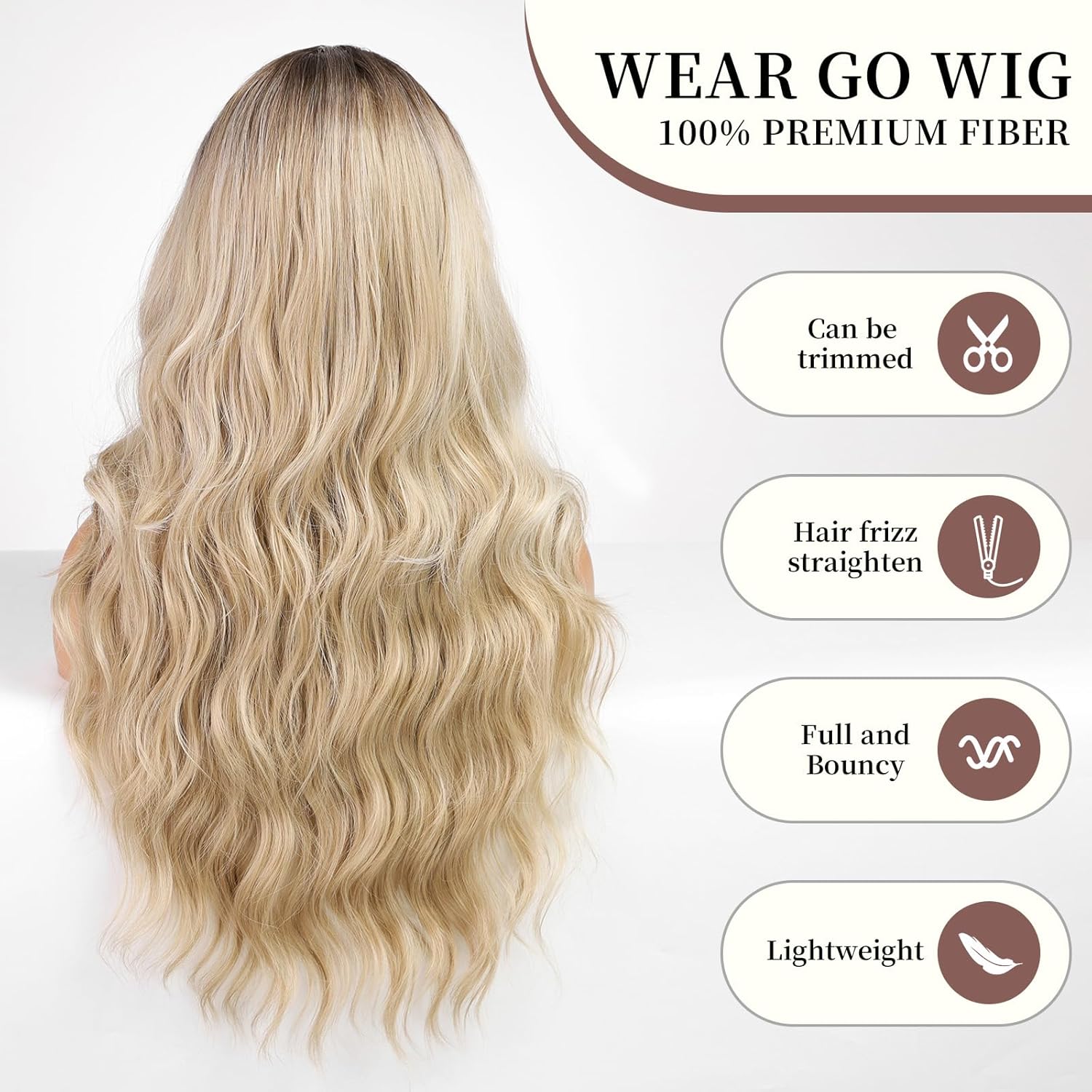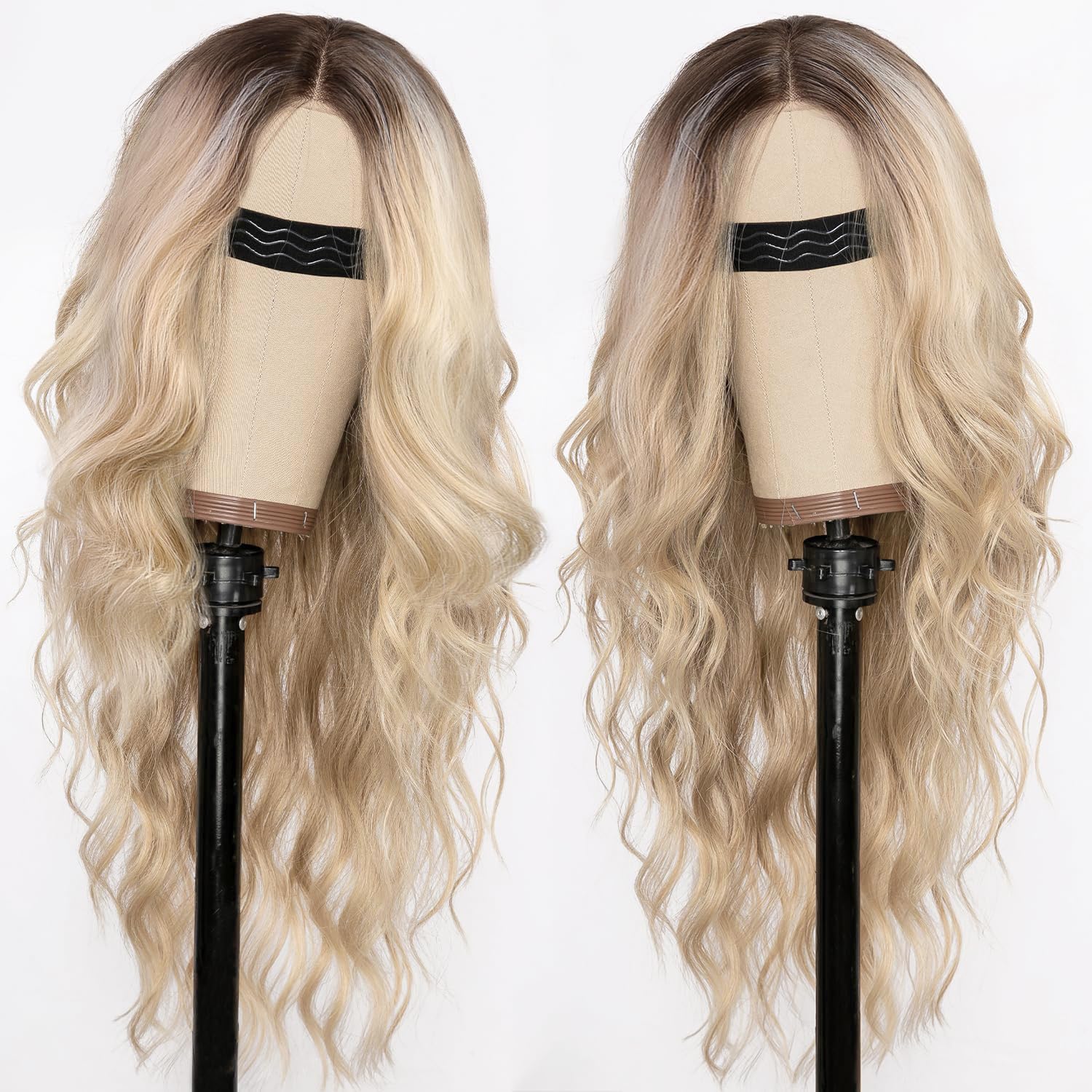 Long Light Blonde Wavy Curly Glueless Synthetic Wig 26 Inches