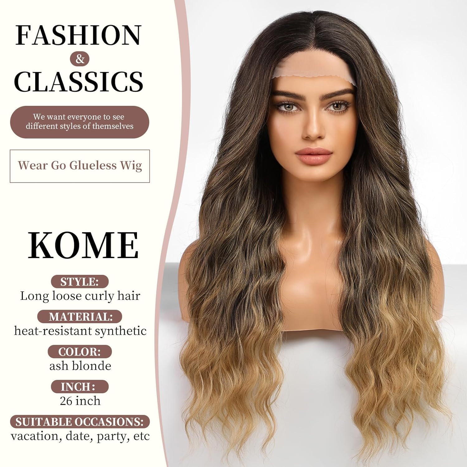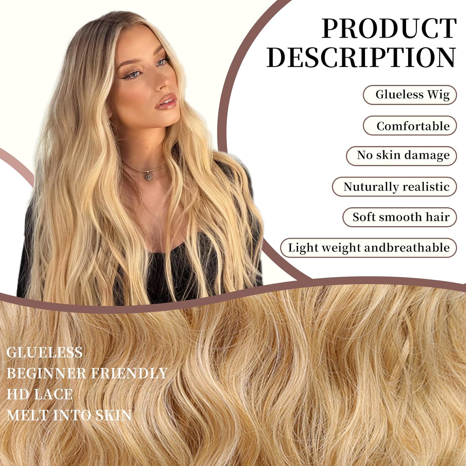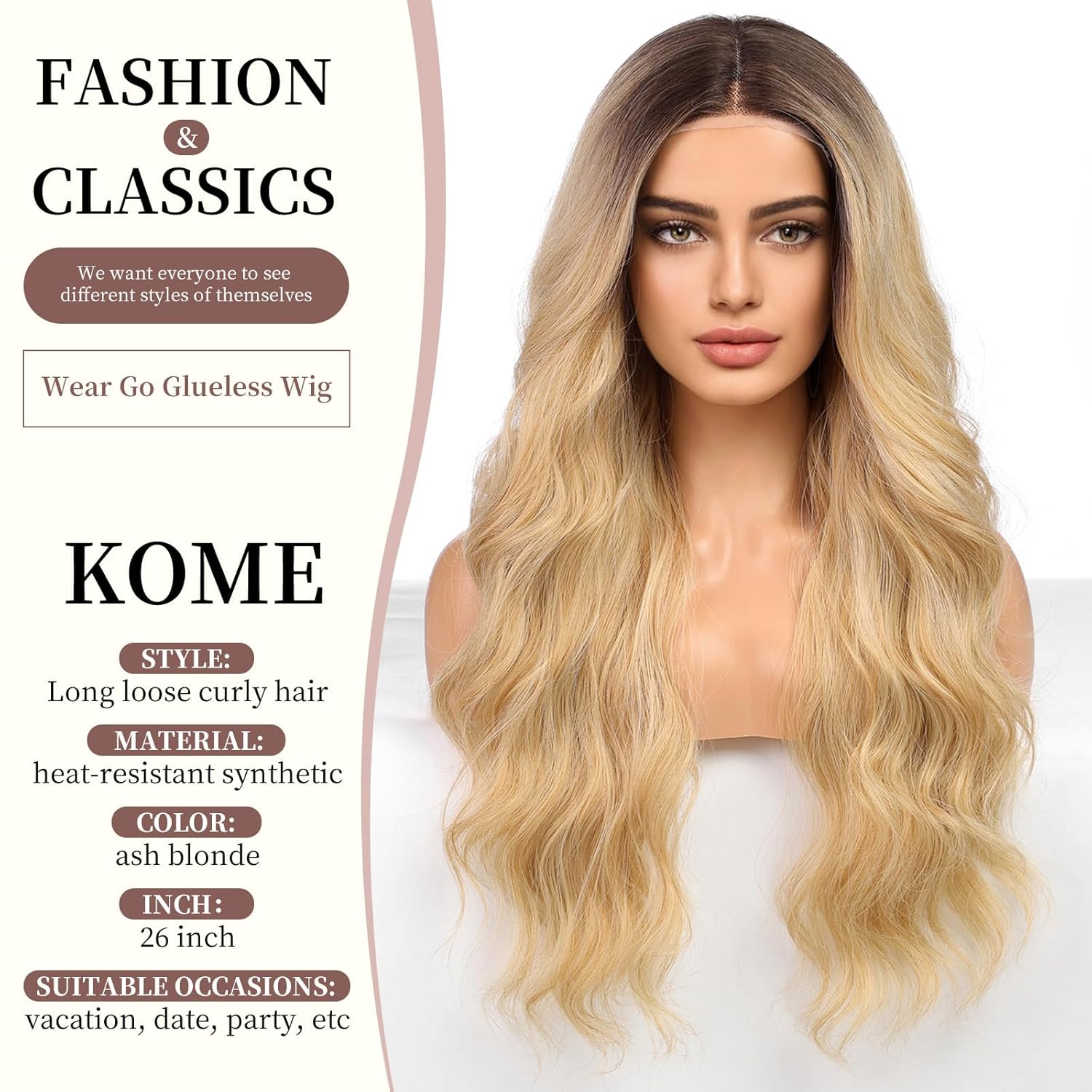 Long Light Blonde Wavy Curly Glueless Synthetic Wig 26 Inches