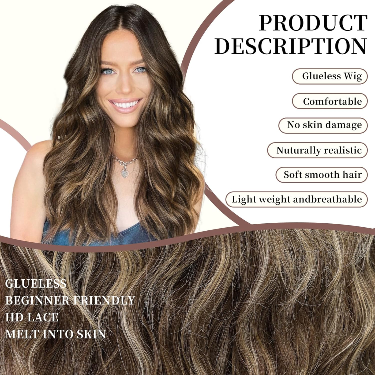 - 【Glueless Wig】No glue is required.The wig fits most head circumferences (21.5-23.5 Inch)and comes with non-slip adjustable straps and small clips to help the wig fit the head more securely.Even wig newbies can put them on quickly.
